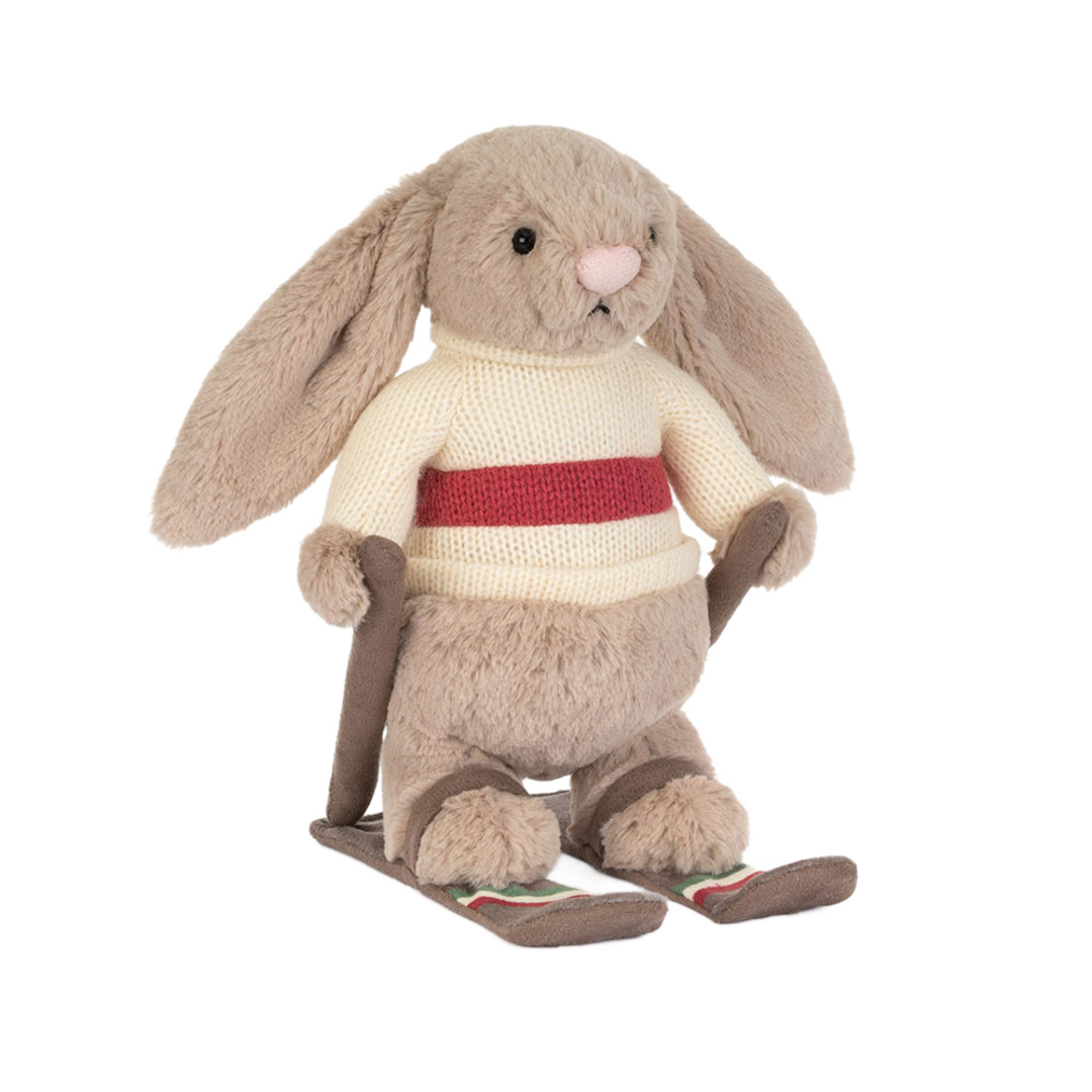 Dimensions: 20cm x 9cm x 16cmSitting Height: 20cmMain Materials: Polyester, AcrylicInner Fillin Polyester Fibres, PE BeansHard Eye | Jellycat Bunny Ski outfit