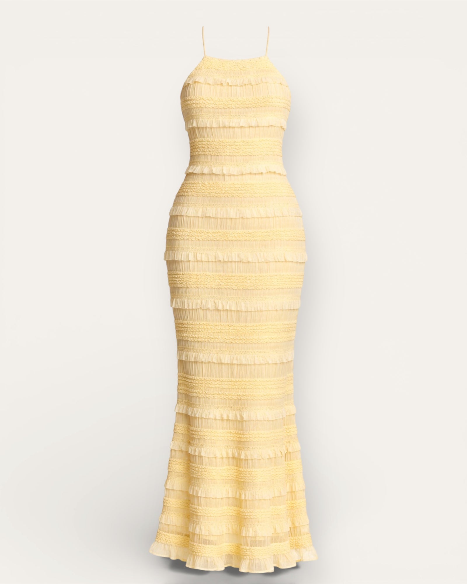 Statement Maxi Kjóll með Opnu Baki Þessi kjóll er moment.   Aðsniðinn maxi kjóll með rykkingu sem mótar líkamann á ótrúlega flattering hátt og leggst mjúklega að öllum réttum stöðum. ... Sjá nánar