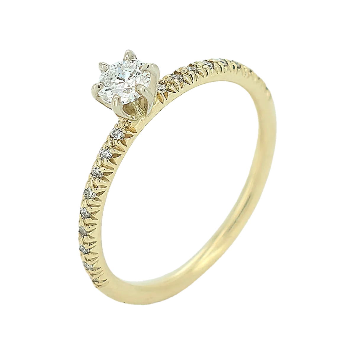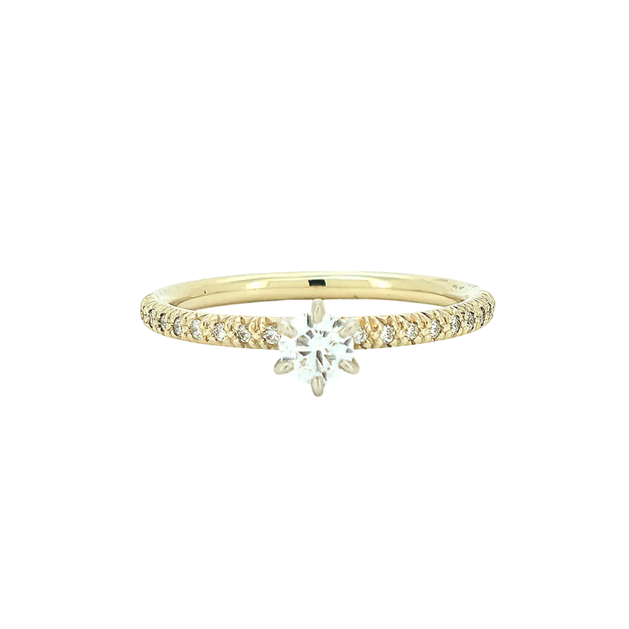 Efni hrings: 14kt gull Steinar: 19 demantar - 0,32ct - Top Wesselton VS - miðjudemanturinn er 0,22ct