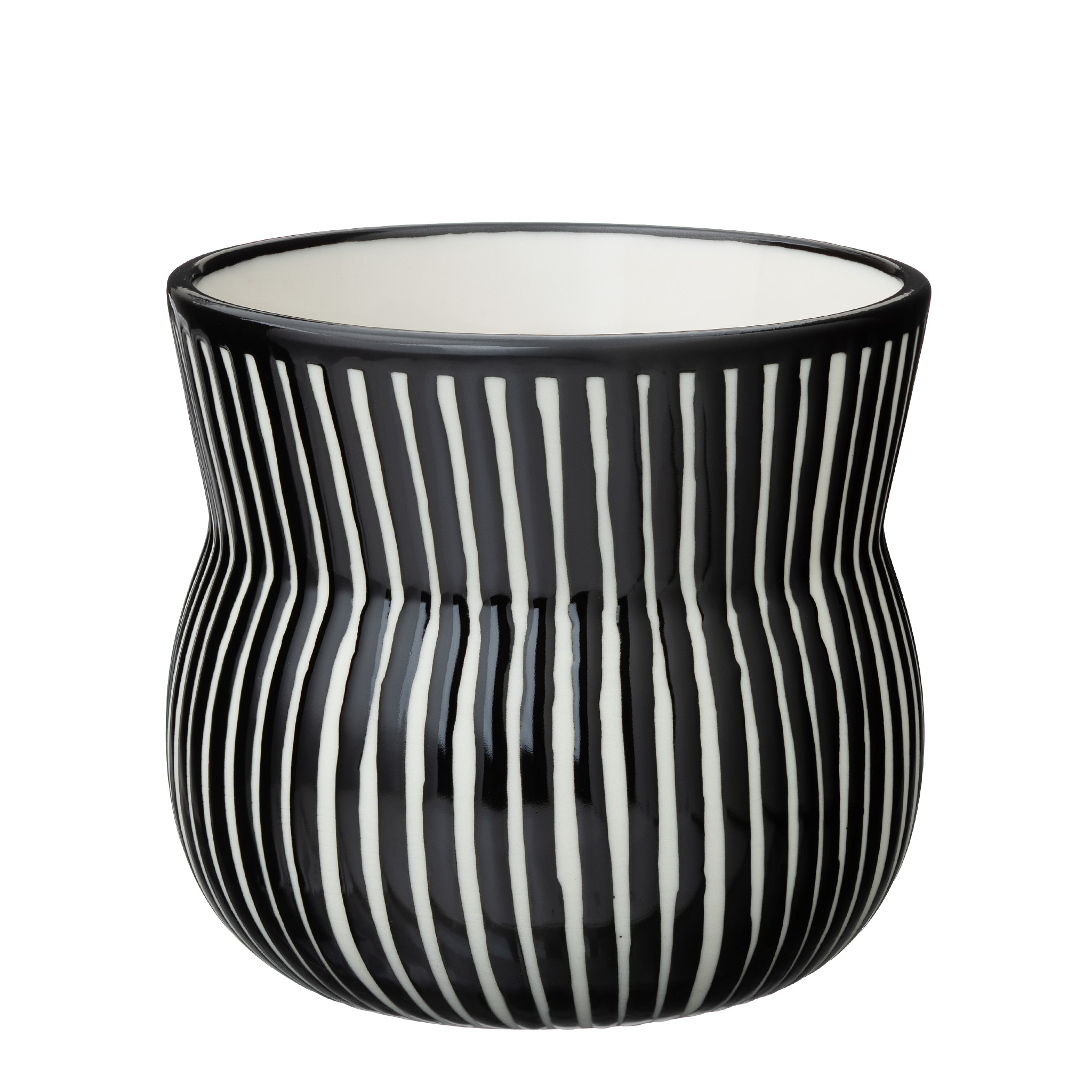 Handgerður svartur Veltibolli úr postulíni, sem þolir vel uppþvottavélar og örbylgjuofna. Bollinn hefur þann eiginleika að hitna ekki efst þegar hellt er í hann allt að 150 millilítrum.