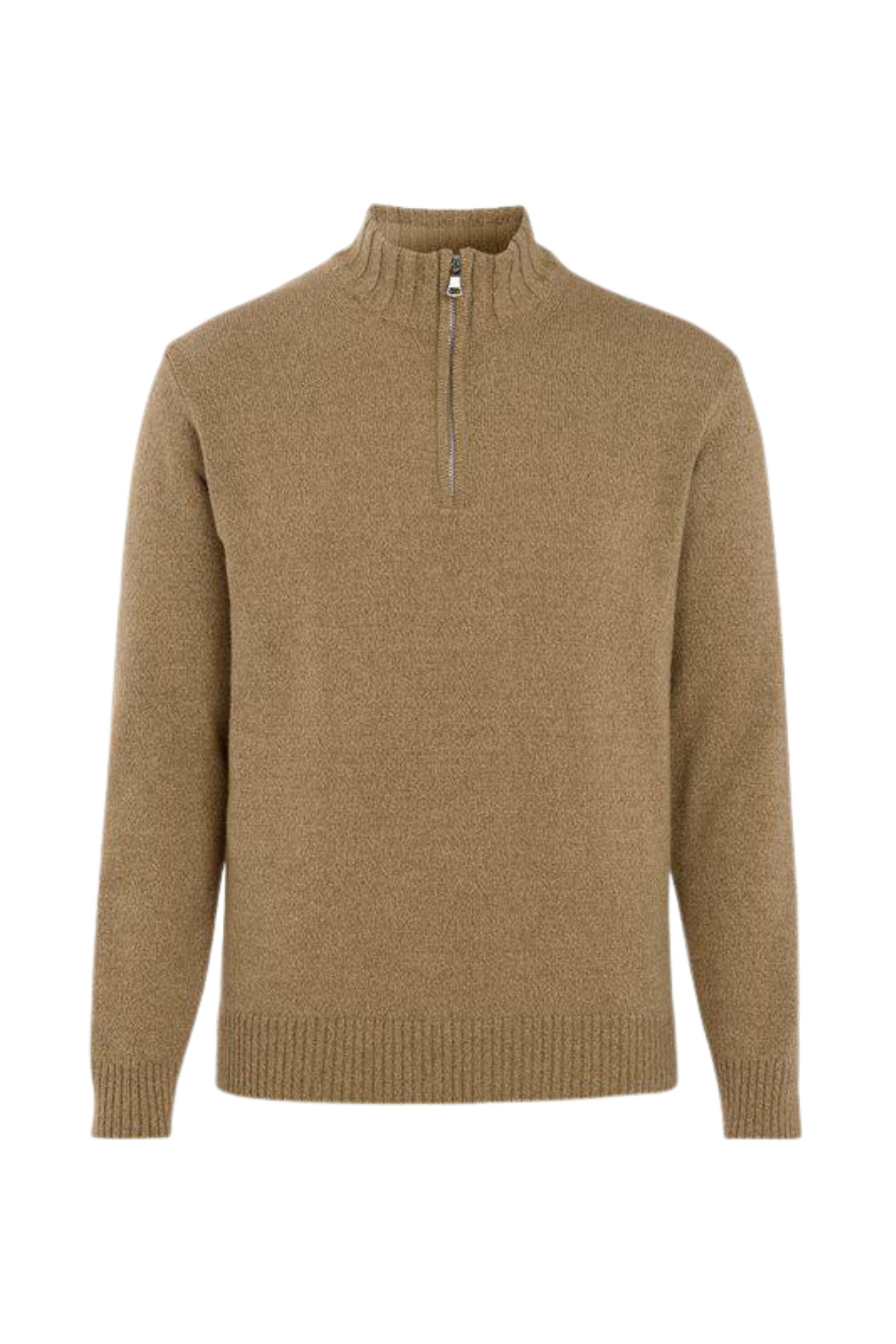 Plain knit half zip sweater in nice melange yarn. 2-ply i.e. 2 threads twisted together which gives this two-tone effect. Inside collar is solid color which gives a nice contrast. Soft and ... Sjá nánar