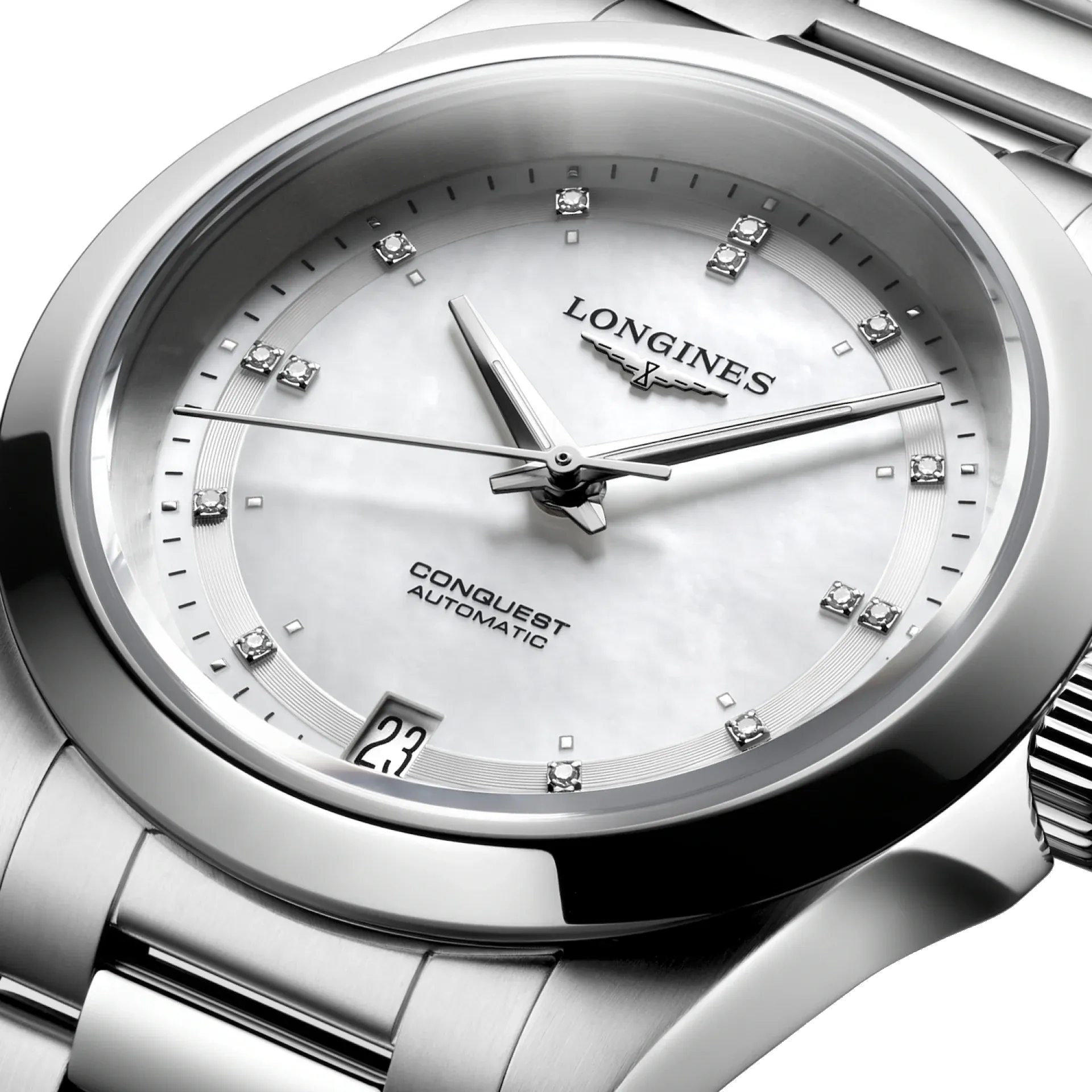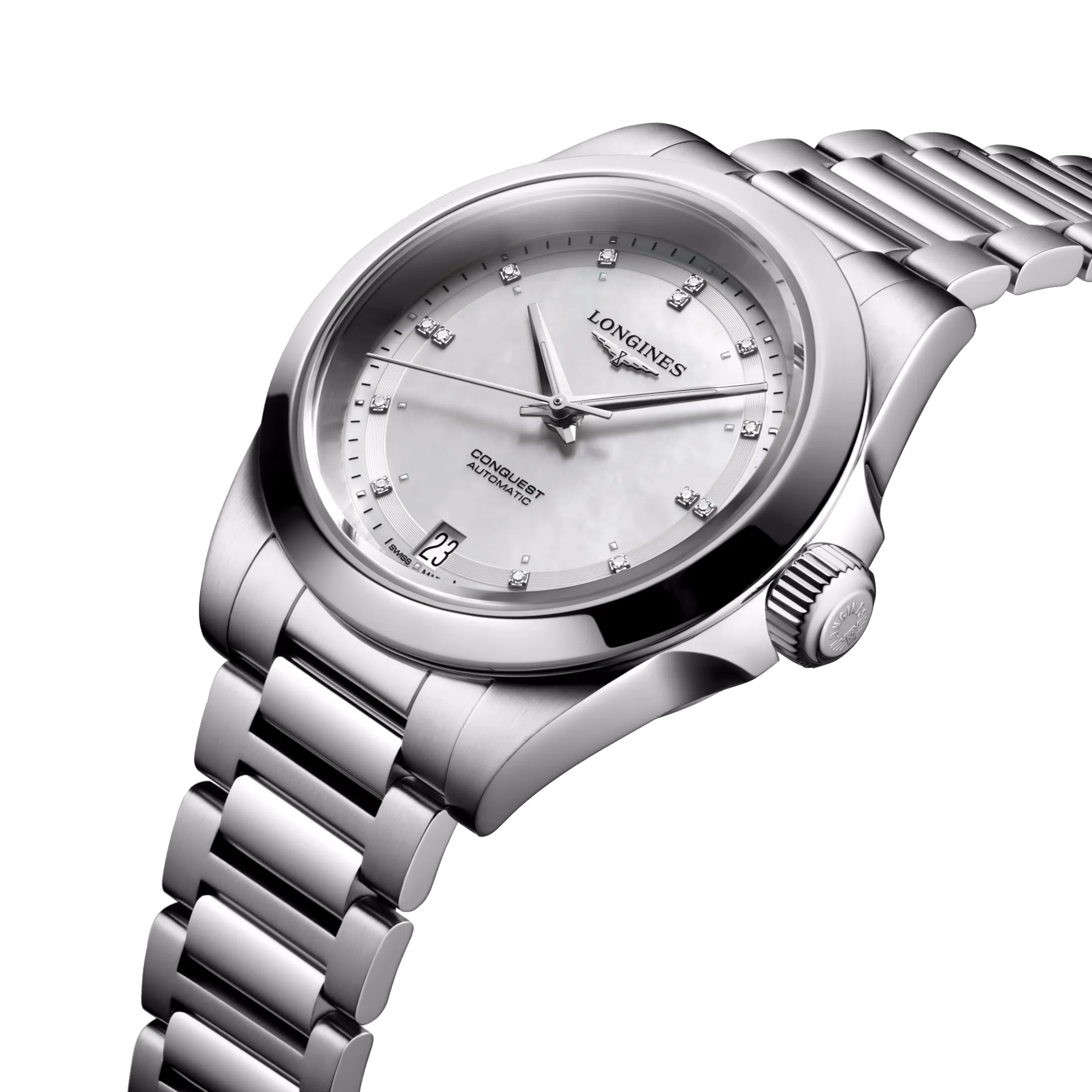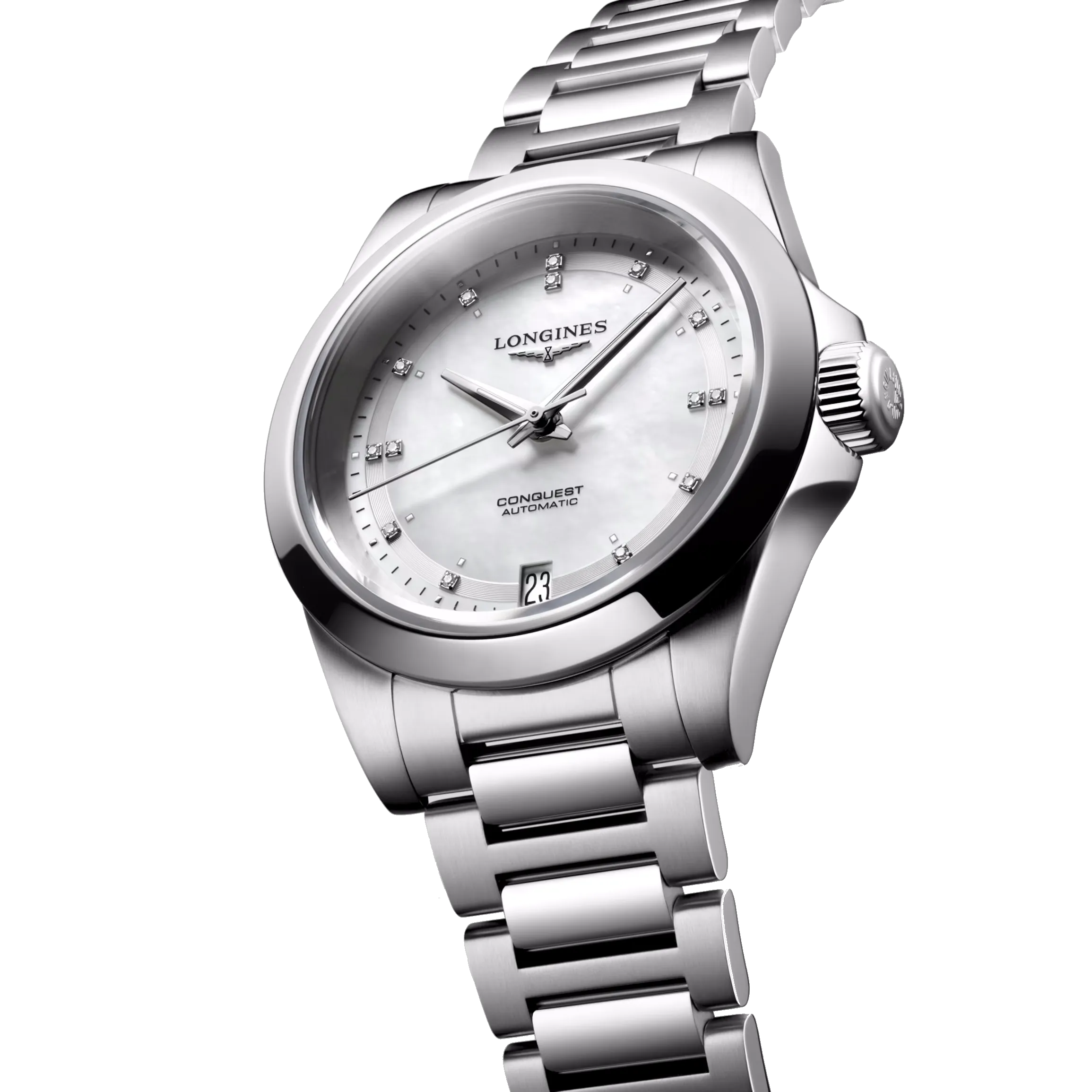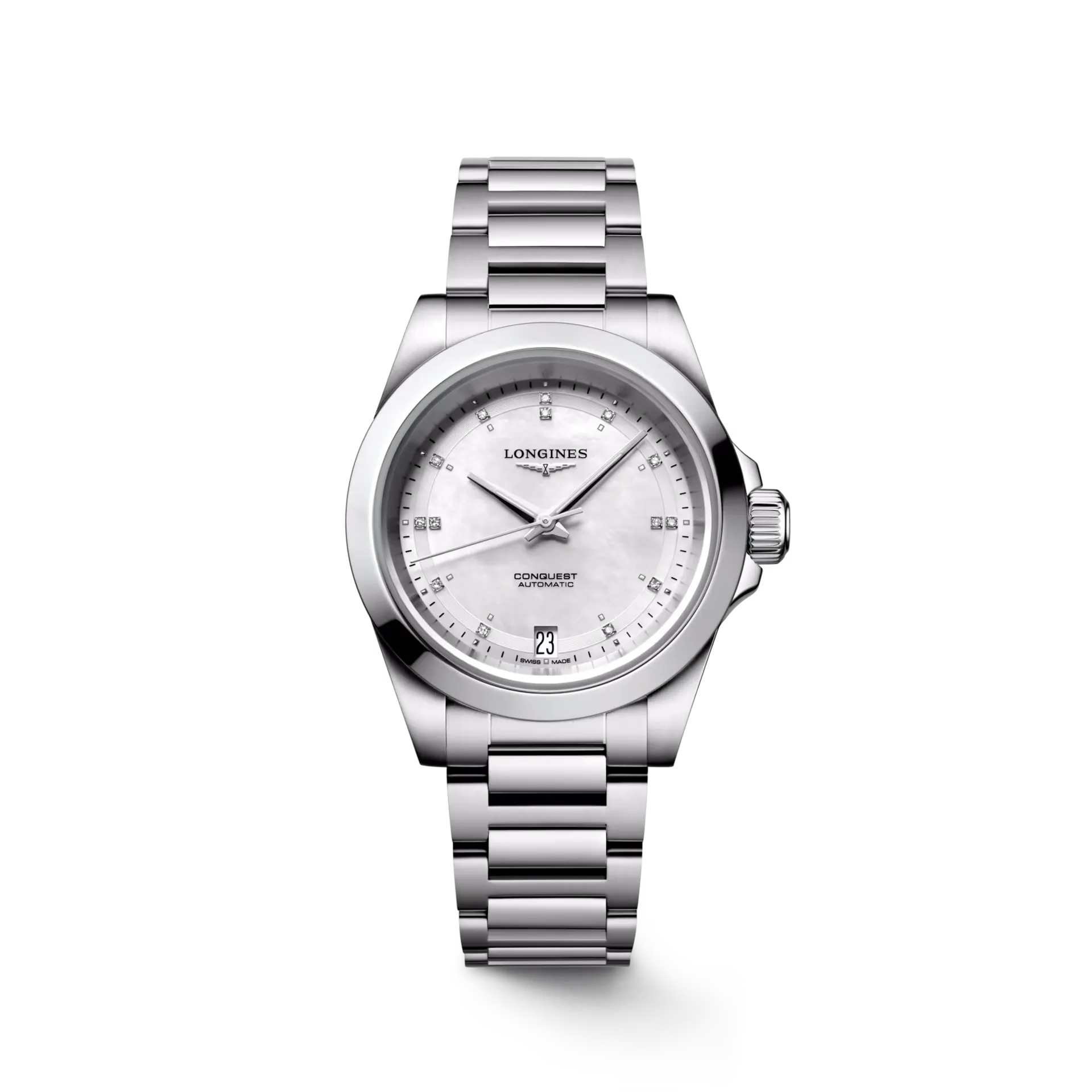 Úrkassi: 34mm – stál – úrbak með safírgleri Úrverk: Sjálftrekkt – L888 með 72 tíma power reserve Vatnsvörn: 100M Skífa: Hvít perlumóðir – 14 demantar (Top Wesselton VS-SI – 0,035ct) – ... Sjá nánar