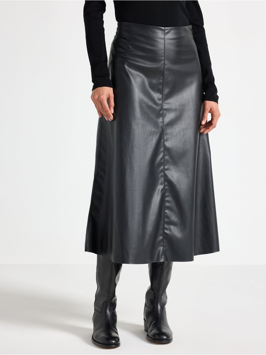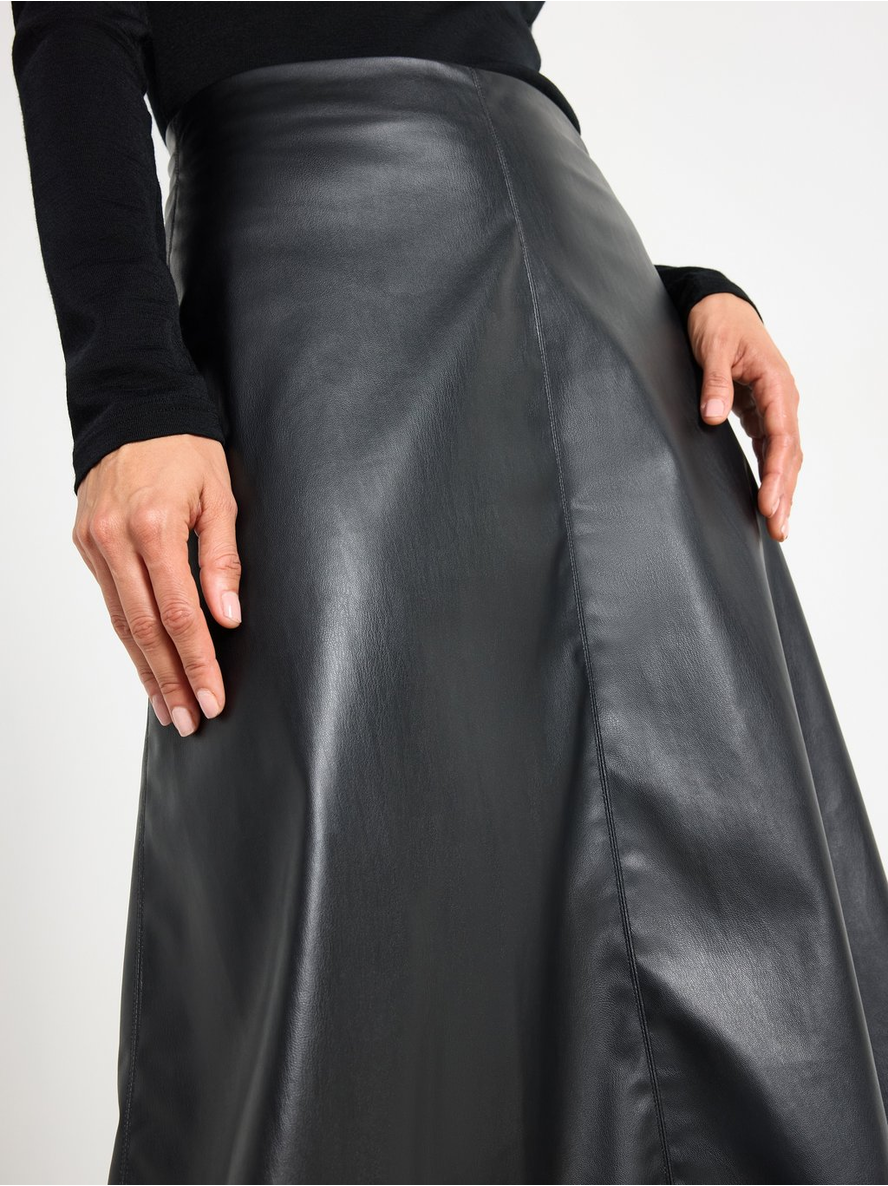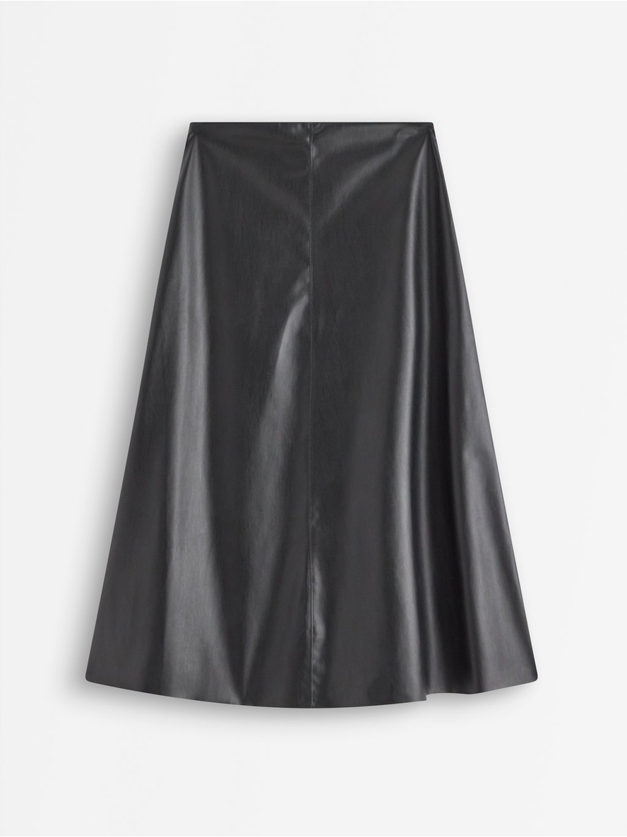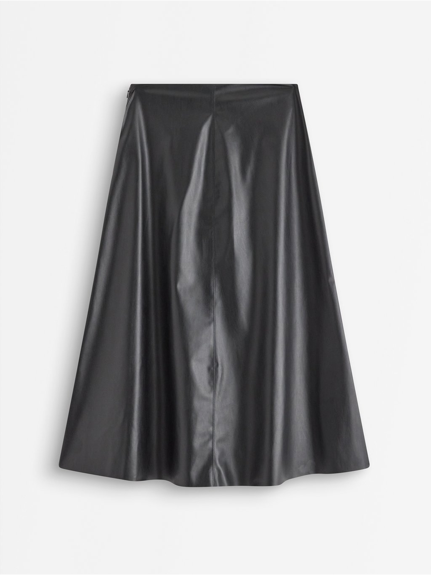 Flared midi skirt in imitation leather with concealed side zip. Side zip Midi length Length: 85 cm in size M 100% polyeurethane