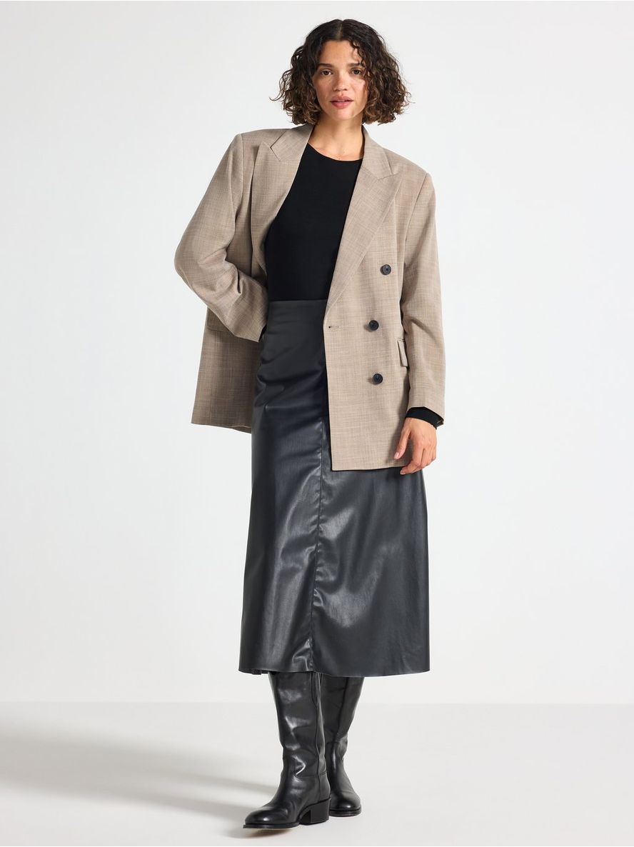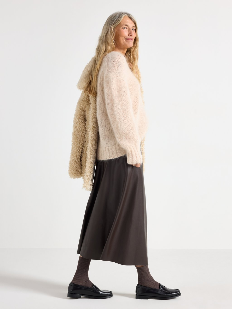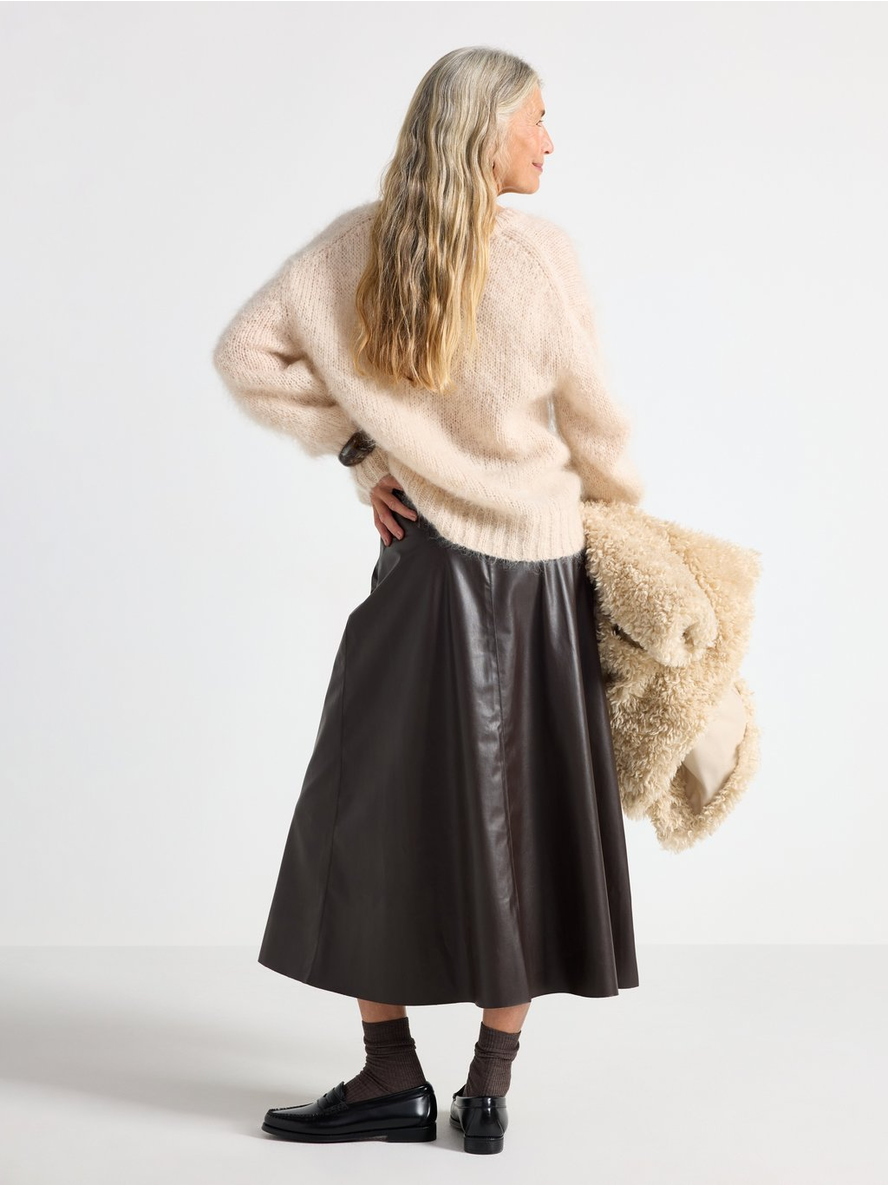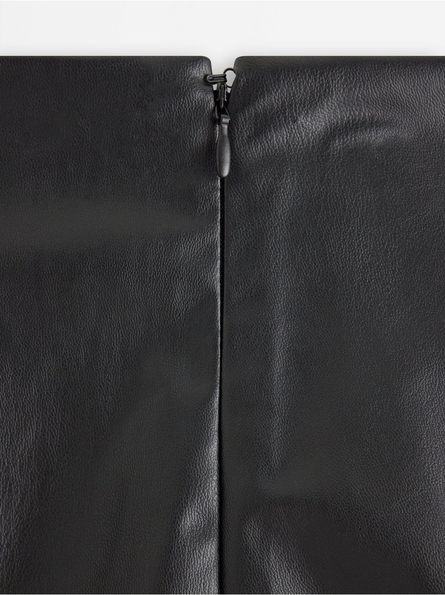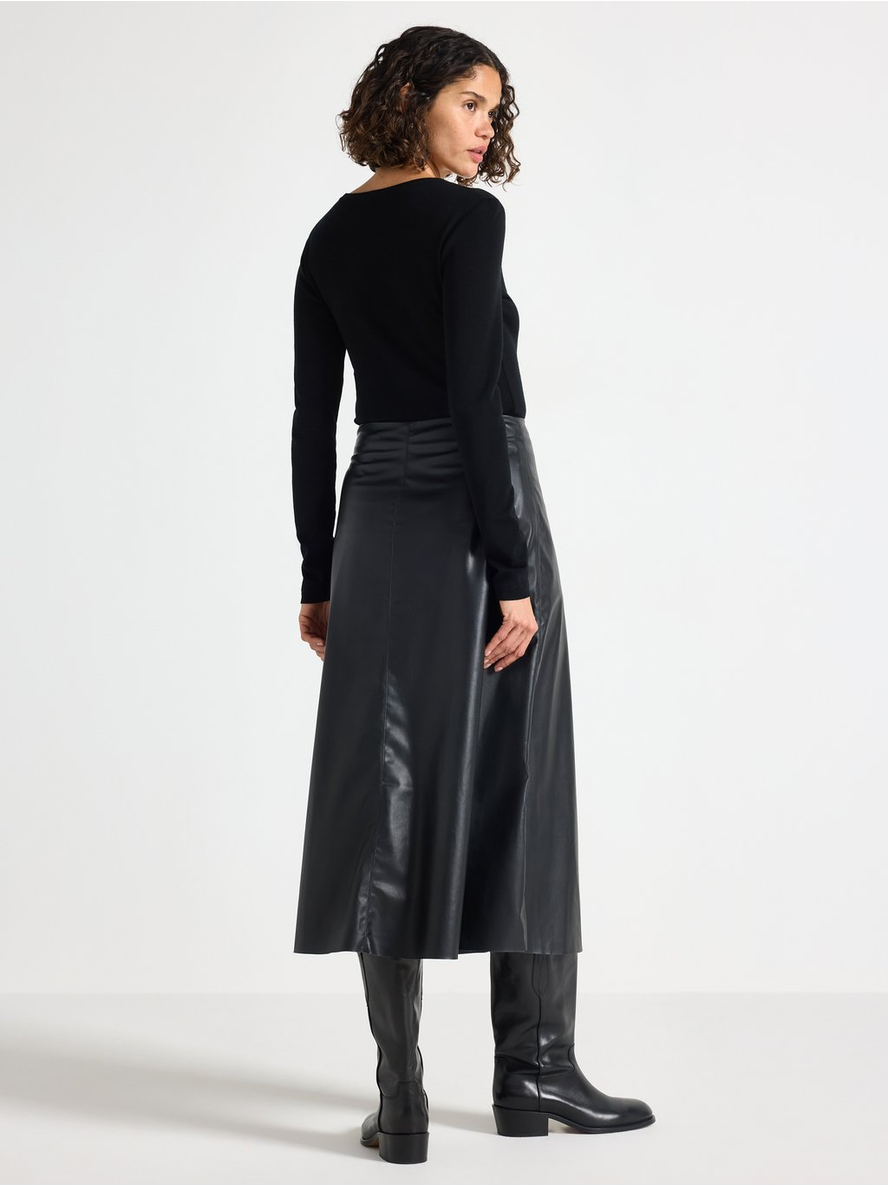 Flared midi skirt in imitation leather with concealed side zip. Side zip Midi length Length: 85 cm in size M 100% polyeurethane