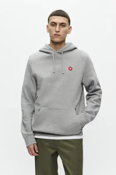 Falleg og stílhrein hettupeysa frá Wood Wood með litlu hringlóttu W logo á bringunni.