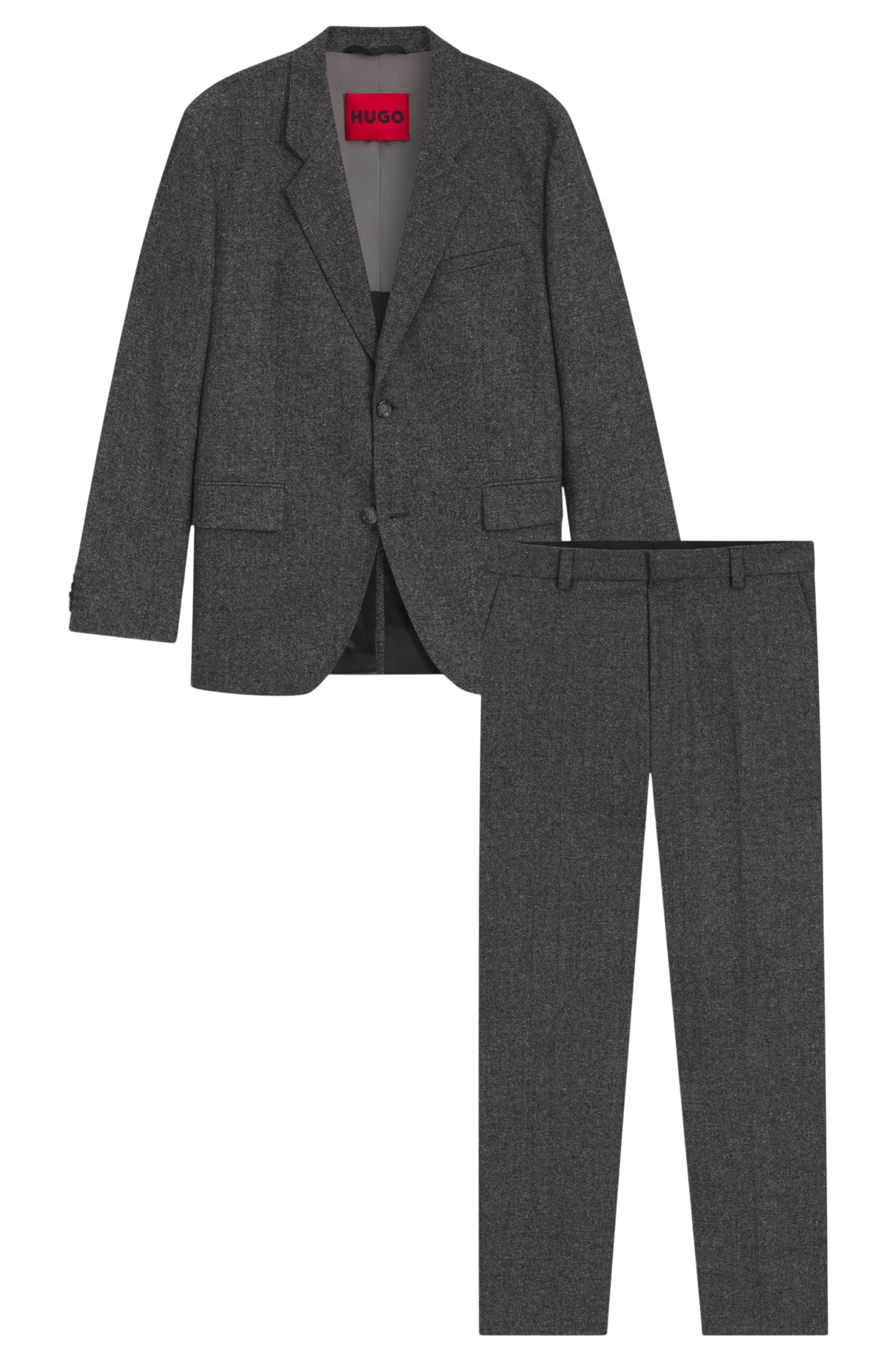 Achieve a heritage look with a modern fit in this two-piece HUGO Menswear suit. Crafted in wool-blend tweed with cotton, silk and stretch. Modern fit Notch lapels Fastening top: Button closure ... Sjá nánar
