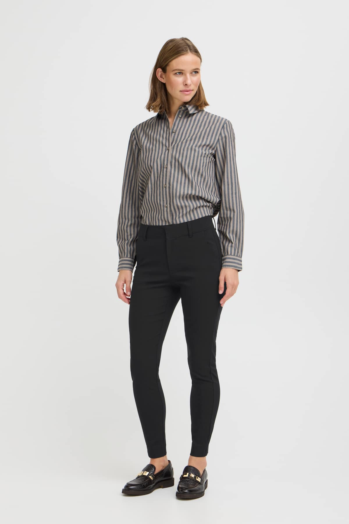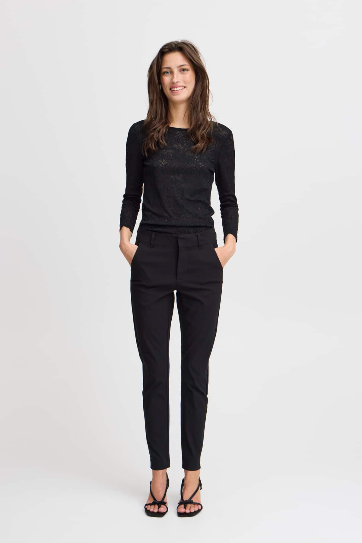 Góðar buxur frá b.young sem eru mjög teygjanlegar. Þær eru með hliðarvösum, í ca. öklasídd og það er hægt að hafa belti á þeim.