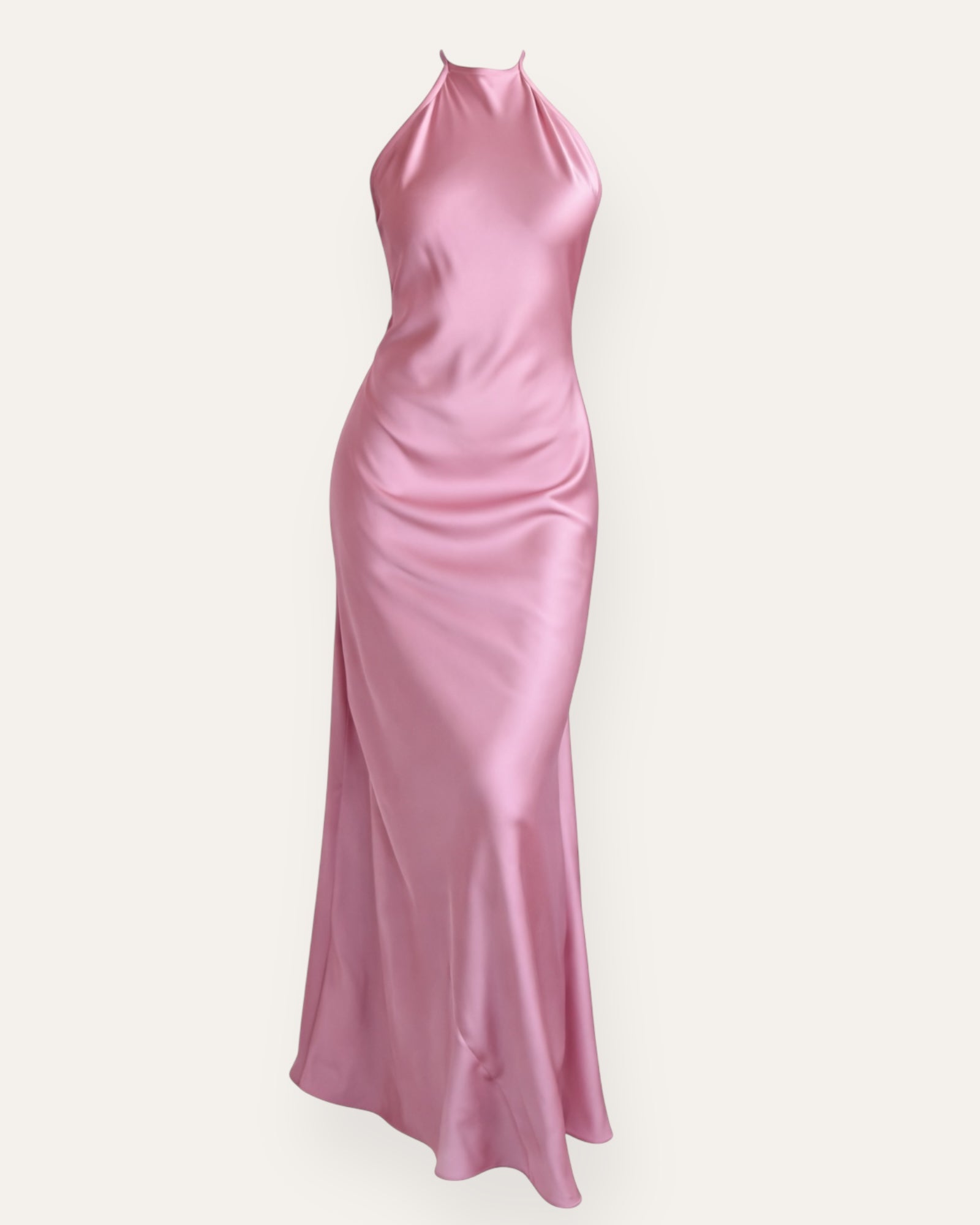 Satin Halter Maxi Dress Ótrúlega fallegur satínkjóll sem gefur elegant en effortless look. Halter hálsmálið og mjúka satínefnið leggja fallega að líkamanum og skapa chic og kvenlegt snið. ... Sjá nánar