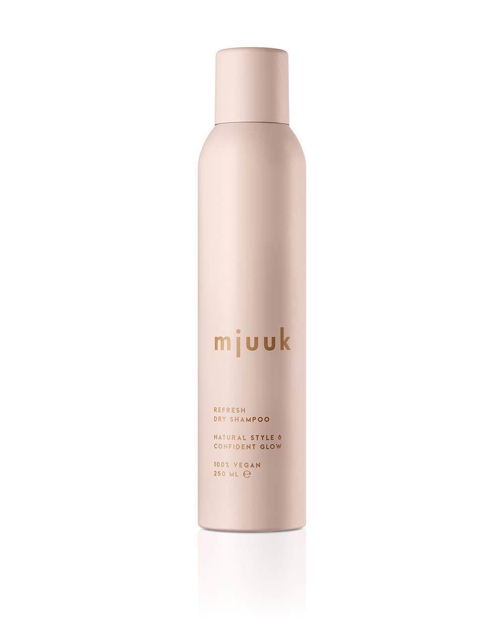 MJUUK REFRESH DRY SHAMPOO hefur einstaka formúlu sem fjarlægir fitu úr hári og hársvörð strax og frískar upp rótina.