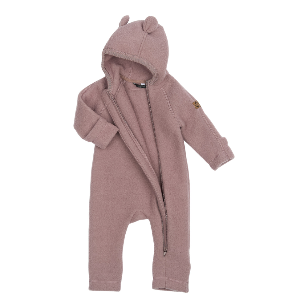 Dásamlegur ullar galli úr mjúkri merino ull sem andar. Gallinn er með hettu með eyrum sem gefur gallanum krúttlegt útlit. Snúningsermar og skálmar halda hita á litlum höndum og fótum. 95% ull ... Sjá nánar
