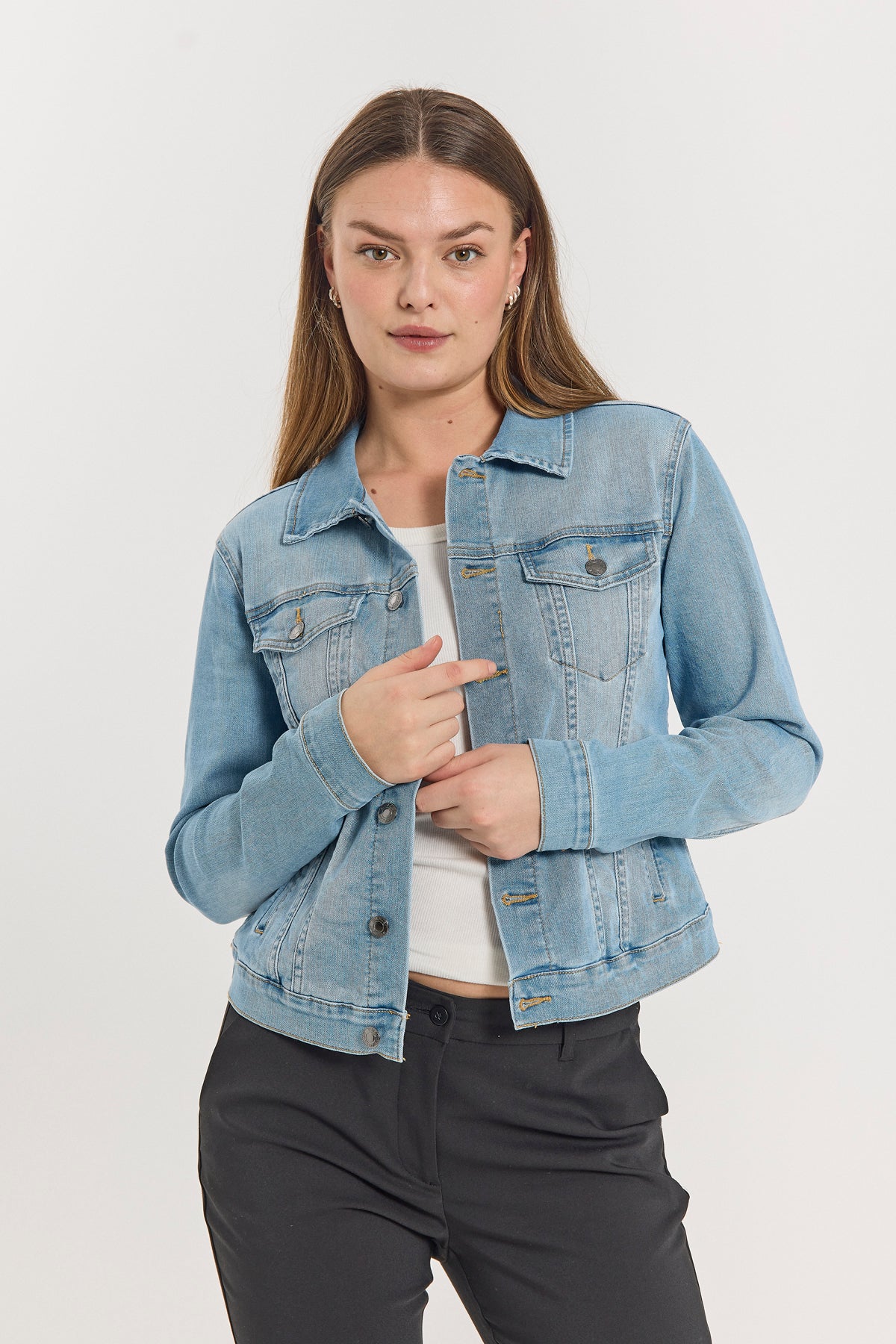 Vinsælu gallajakkarnir frá Free/Quent. 61% bómull 33% polyester 4% viscose 2% teygja