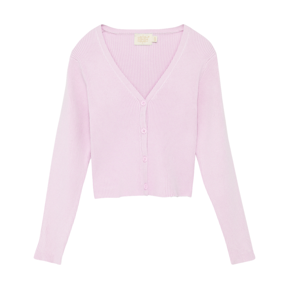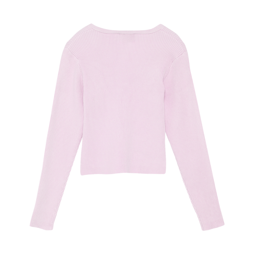 Ljós bleik, hneppt peysa með V-hálsmáli. 80% viscose og 20% nylon.