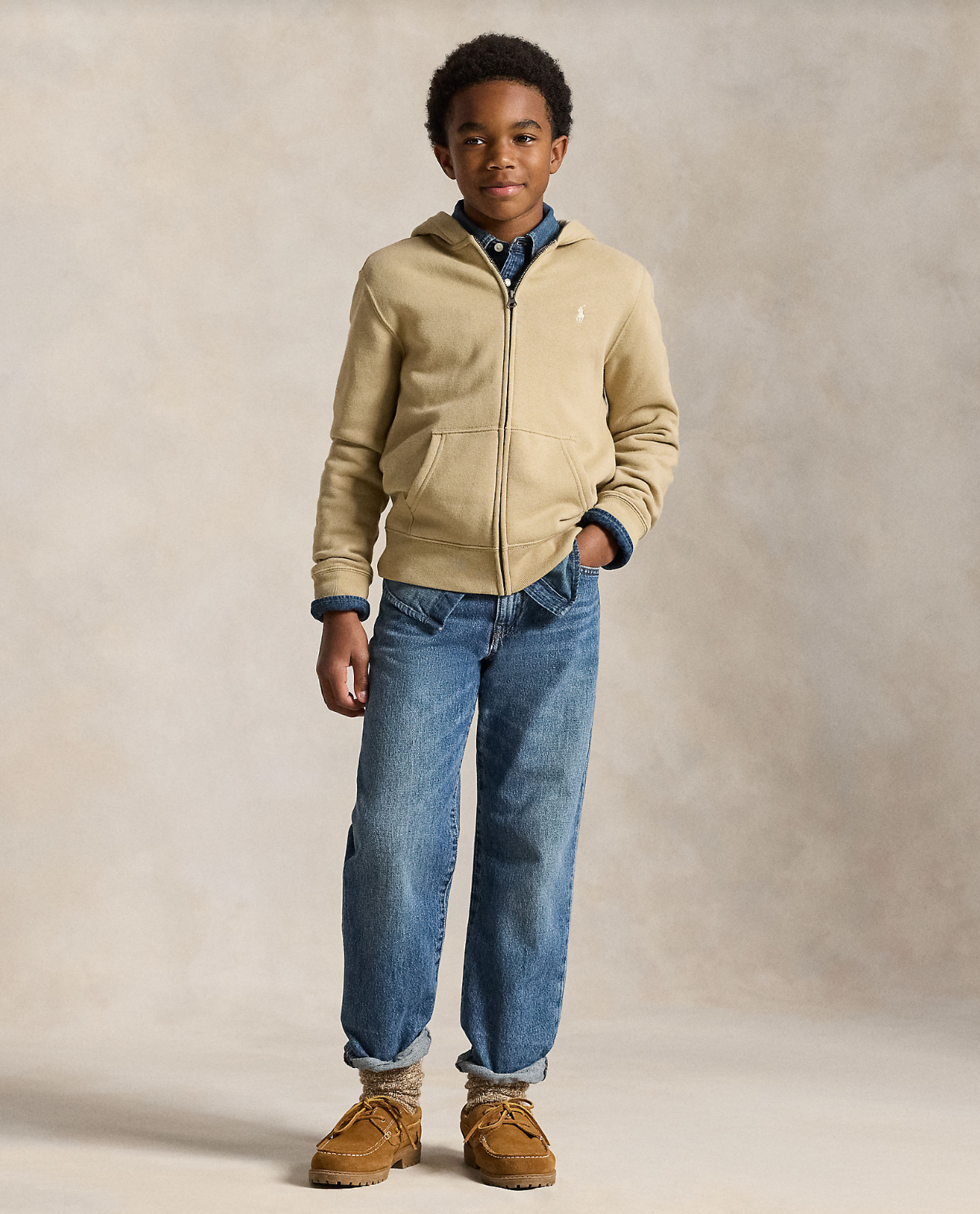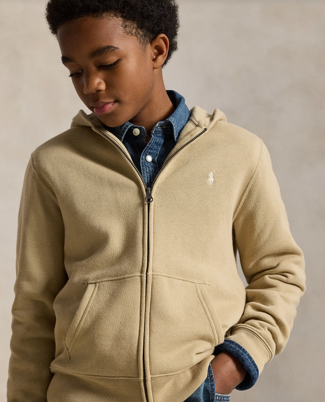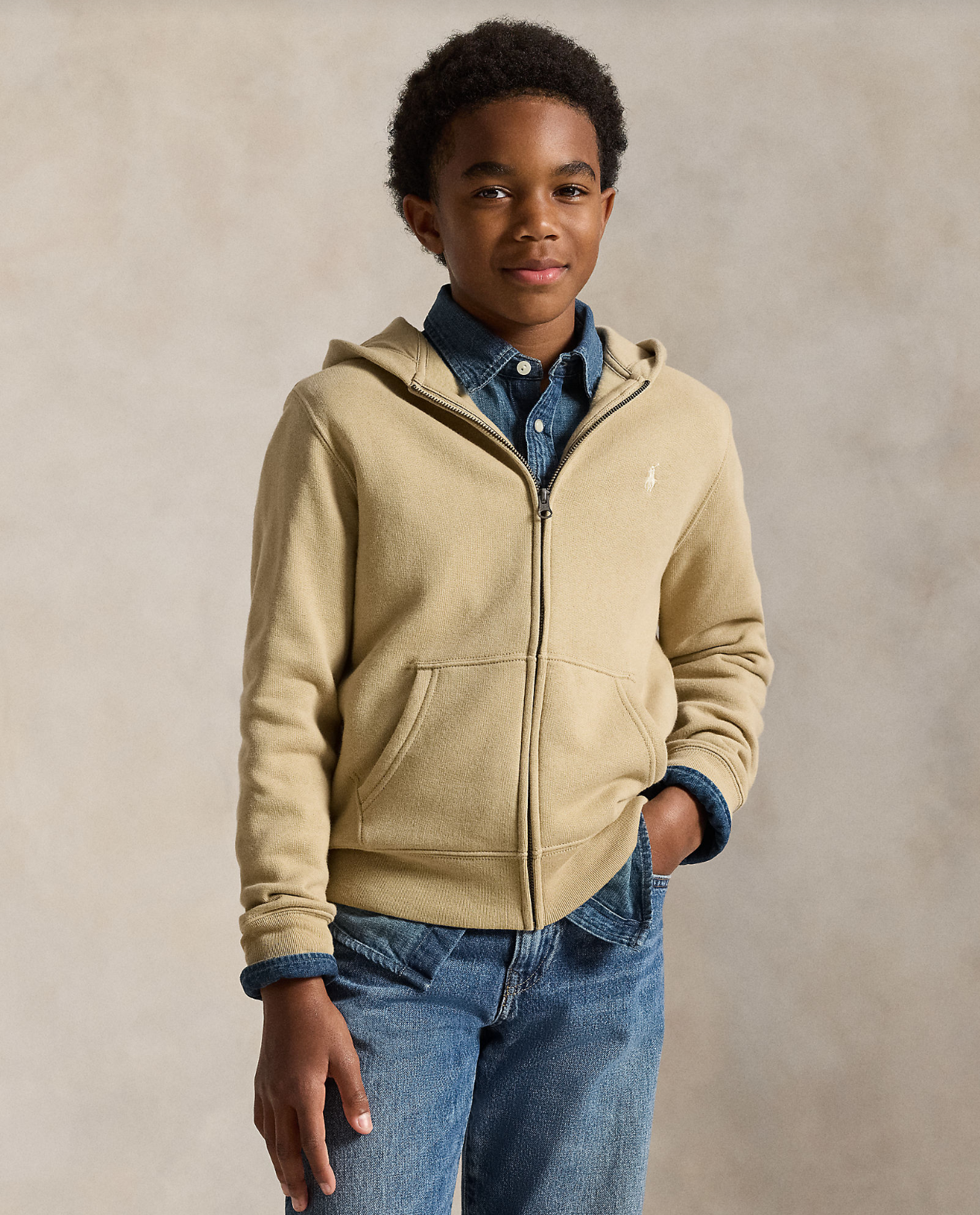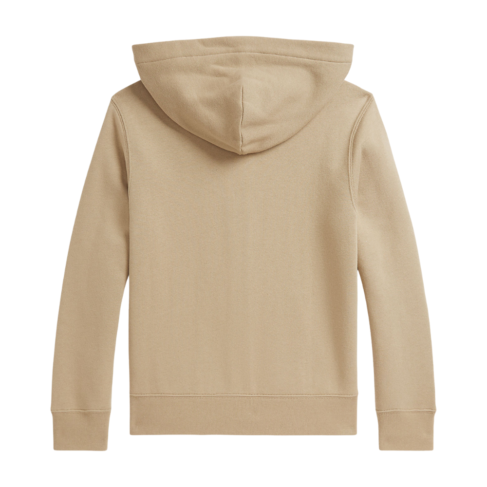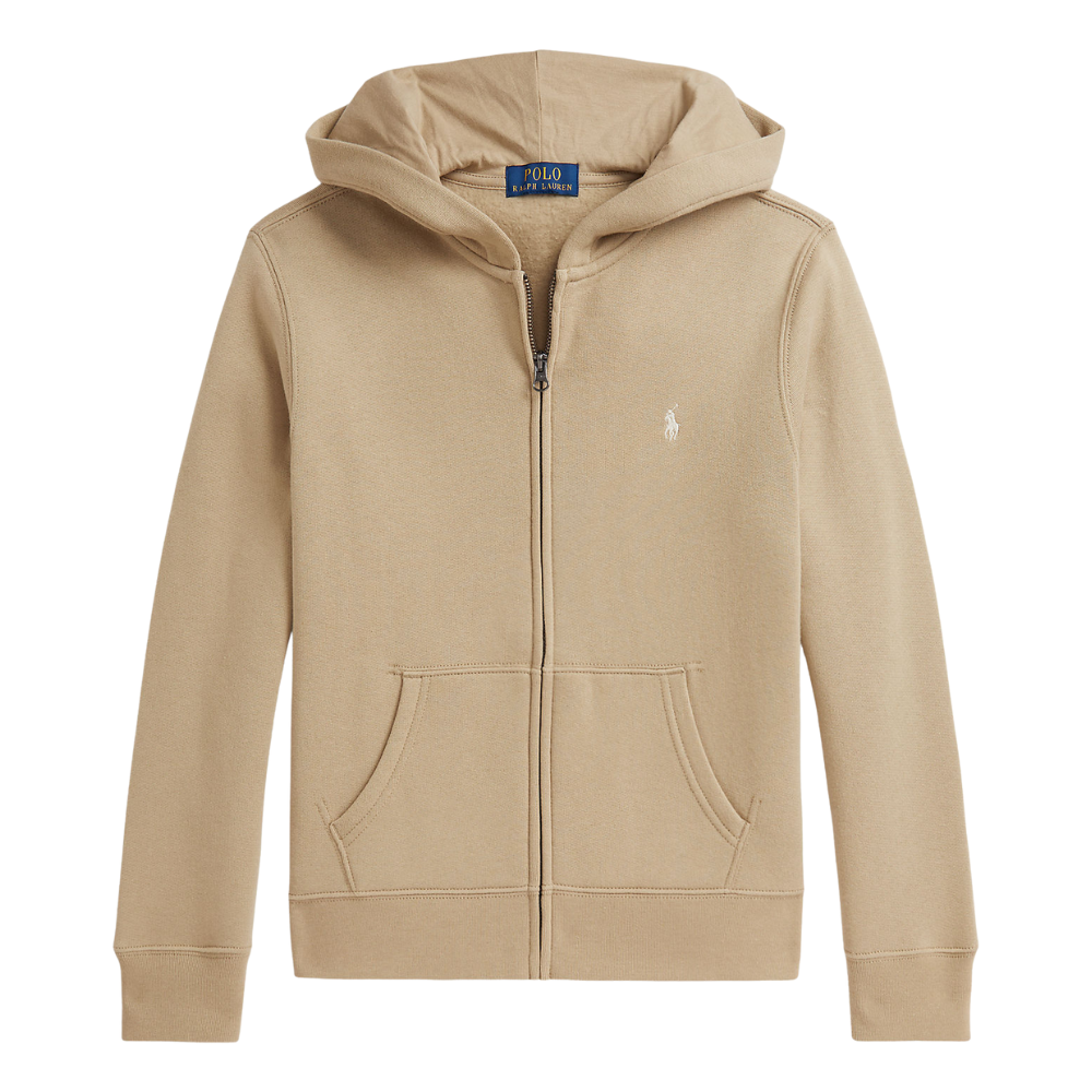 Ljós brún, rennd hettupeysa frá Polo Ralph Lauren. 84% bómull og 16% polyester.