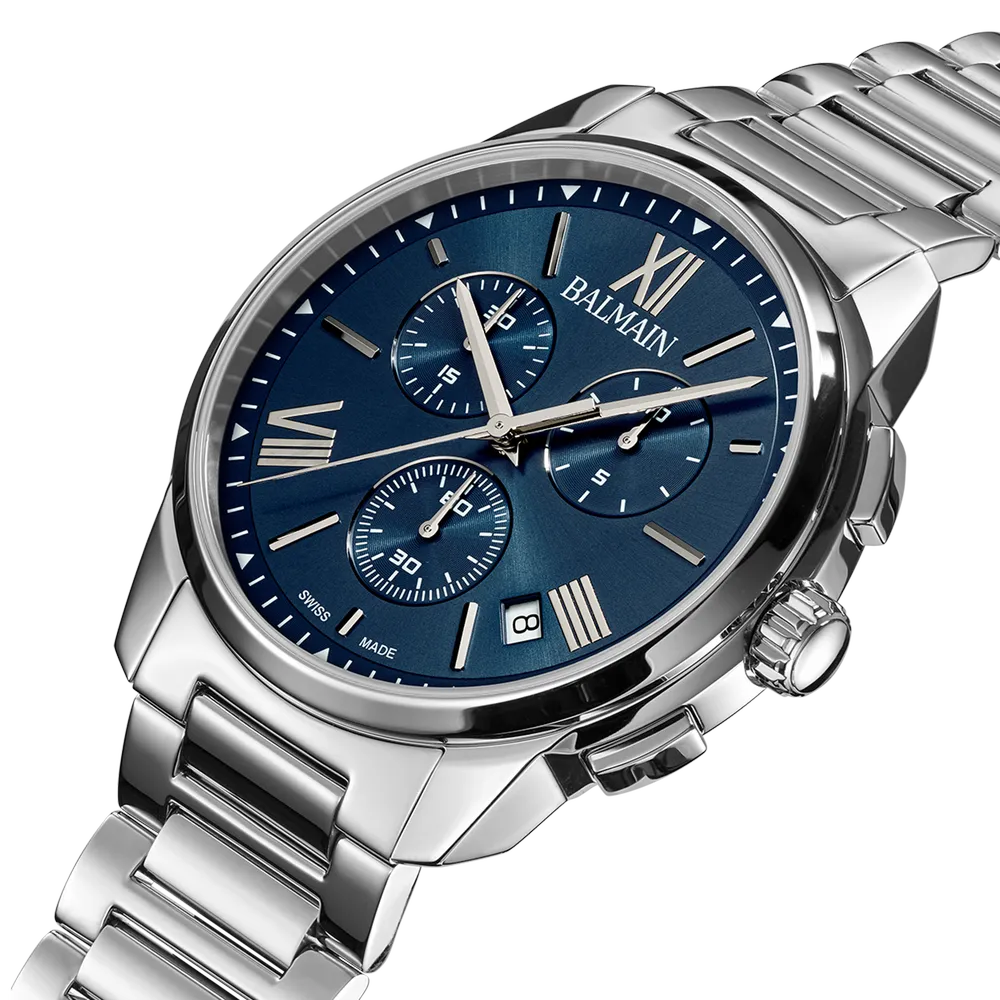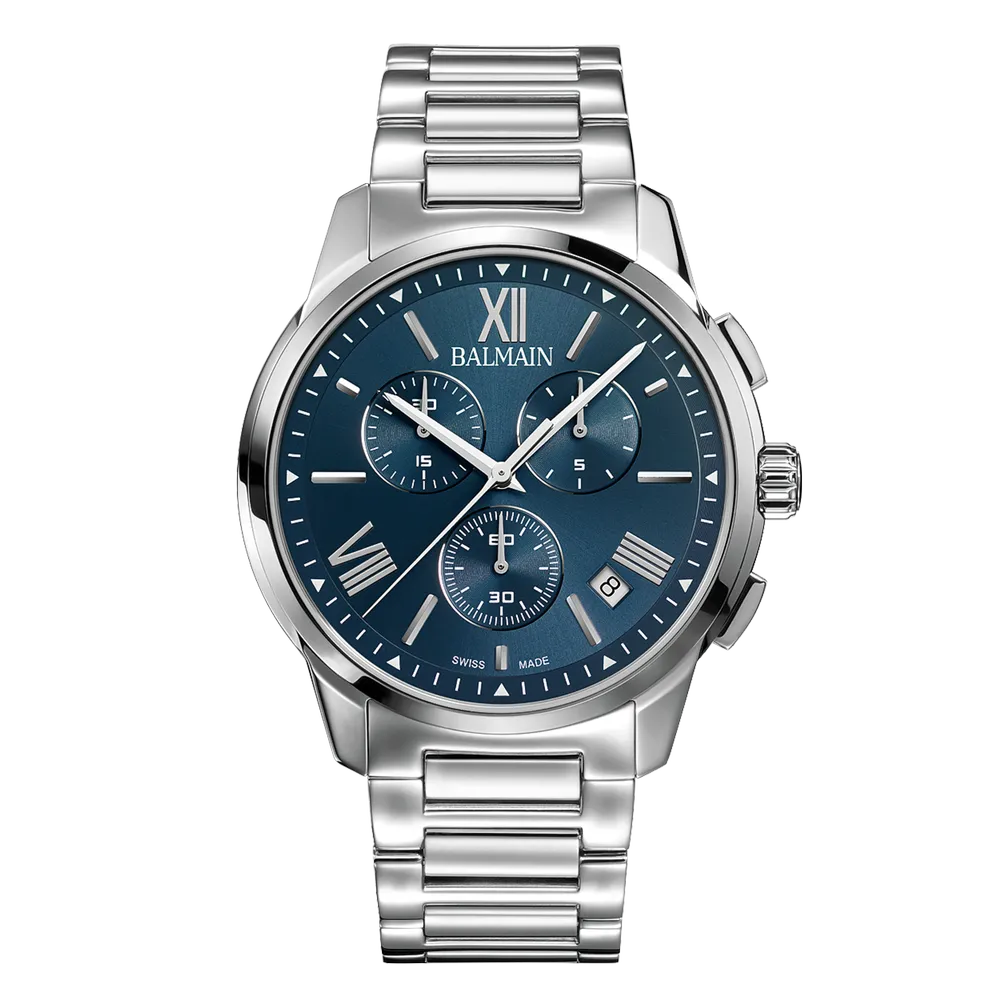 Úrkassi: 42mm – stál Úrverk: Rafhlaða – skeiðklukka – svissneskt Vatnsvörn: 50M Skífa: Blá – áfest strik – dagsetning hjá kl 4.30 – vísar Gler: Safírgler – speglunarvörn Keðja: Stál – ... Sjá nánar