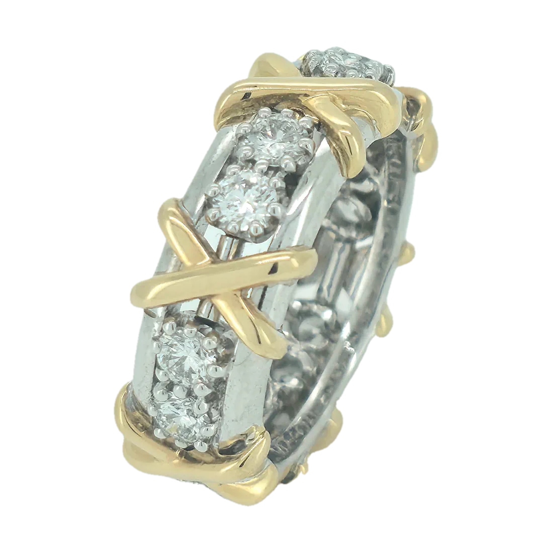 Efni hrings: 14kt hvítagull & 18kt gull Steinar: 12 demantar – 1,25ct – Top Wesselton VS