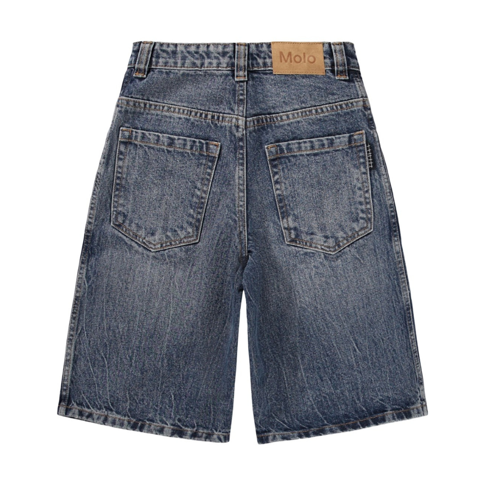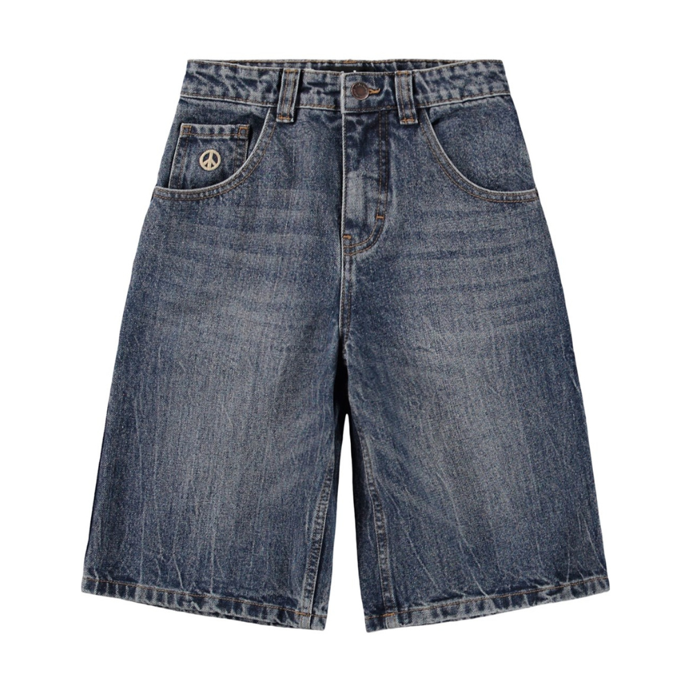 Dökk bláar galla stuttbuxur frá Molo. 72% bómull, 16% viscose og 12% polyester.