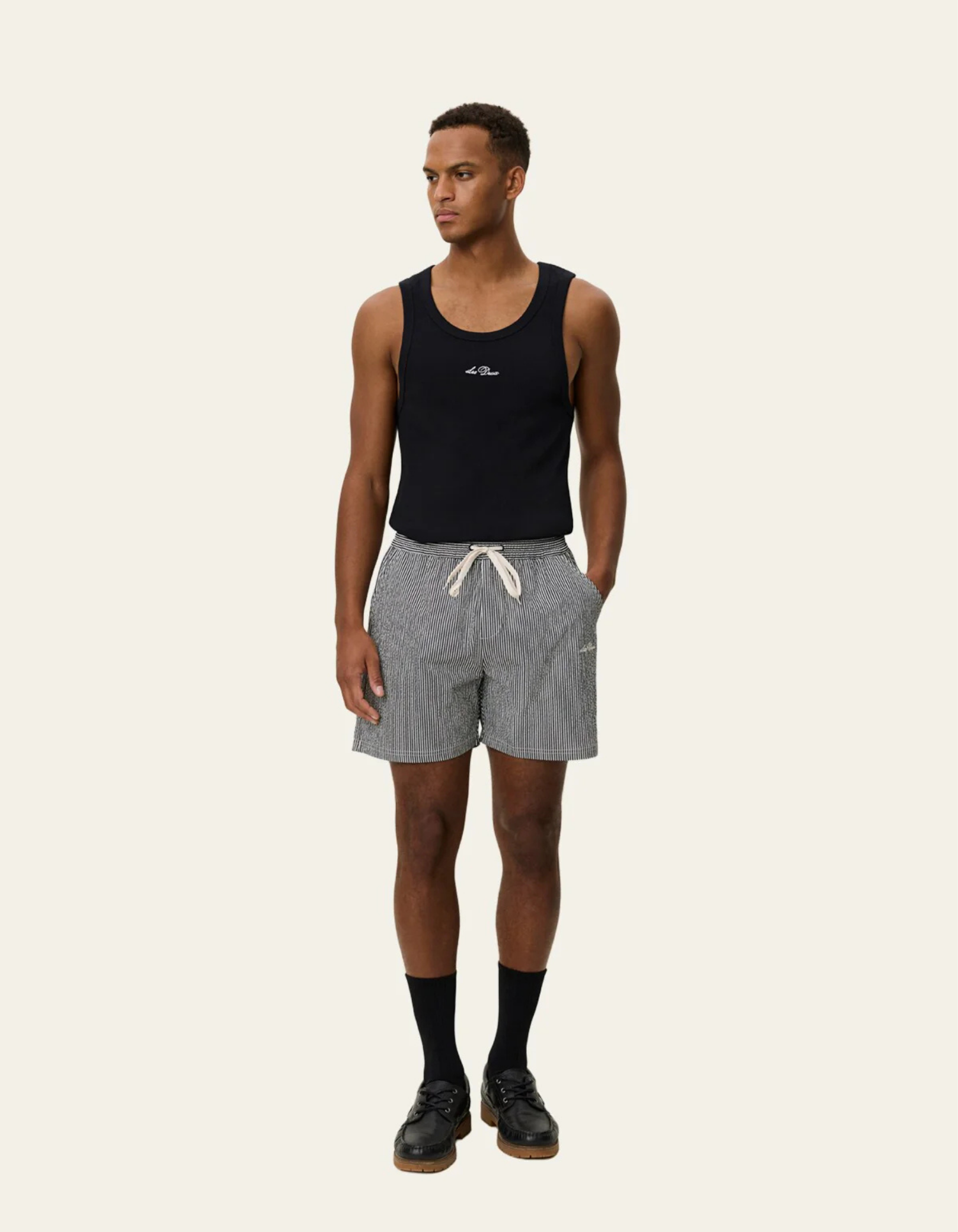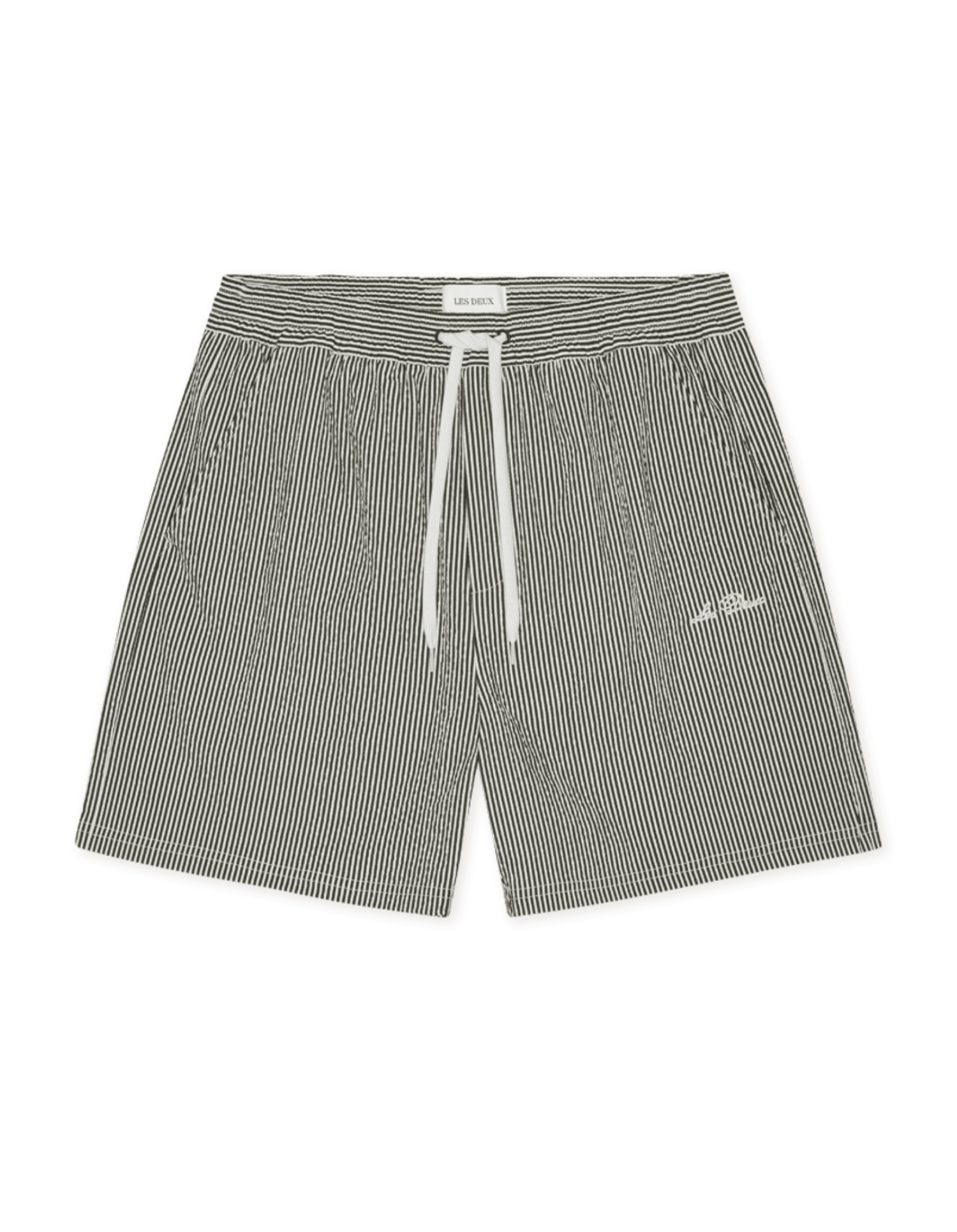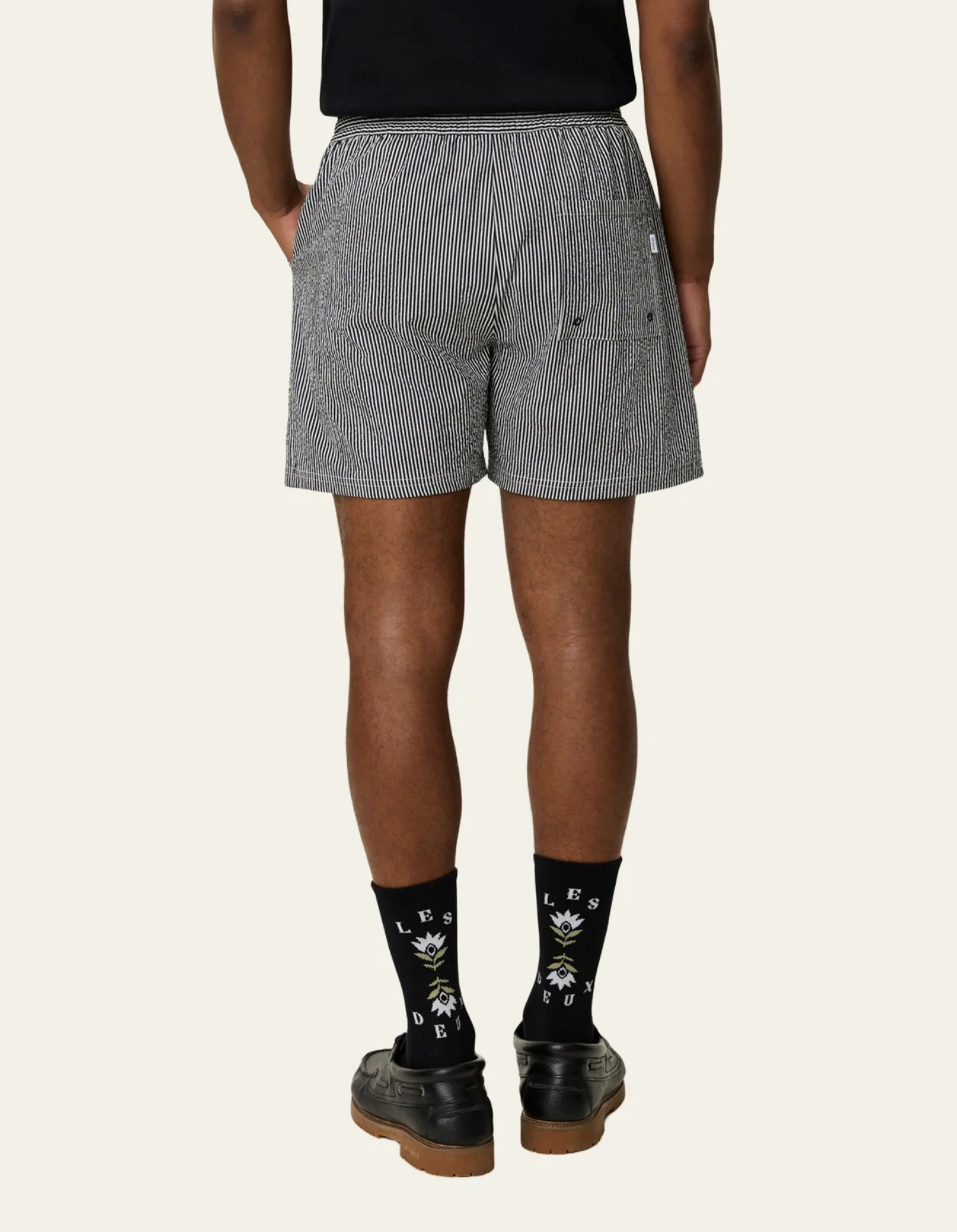 Striped seersucker swim shorts with a textured surface and a relaxed cut. Designed with an elasticated waist and subtle front embroidery. 100% Polyester (Recycled) Striped seersucker fabric ... Sjá nánar