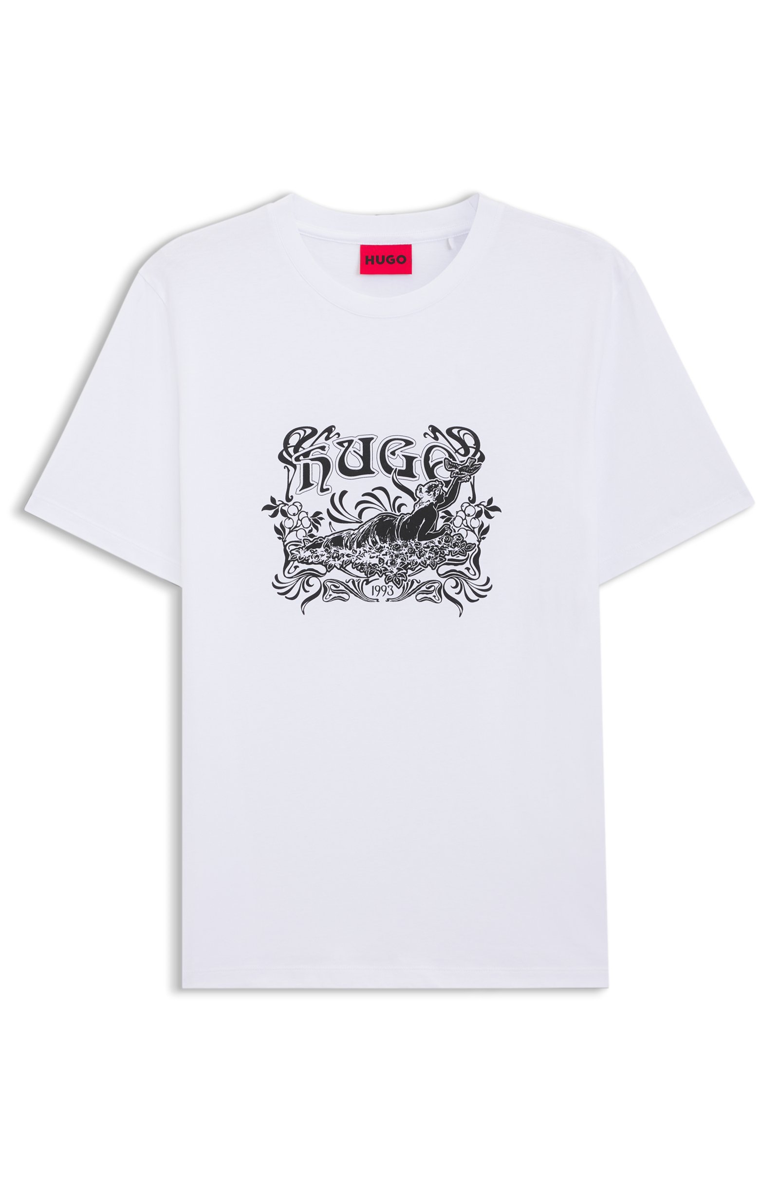 Emblazoned with creative HUGO Menswear artwork, this T-shirt will breathe new life into your casuals. Straight fit. Soft cotton jersey. Regular fit Neckline: Crew neck Short sleeves 100% ... Sjá nánar