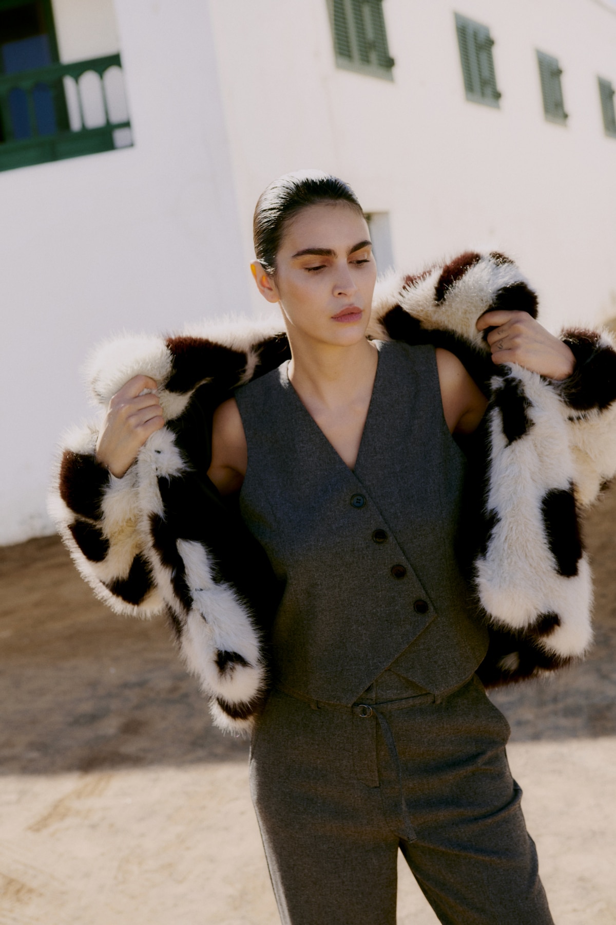 Flottur og notalegur "faux fur" pelsjakki frá b.young. Hann er með hliðarvösum og er ágætlega stór í stærðum.