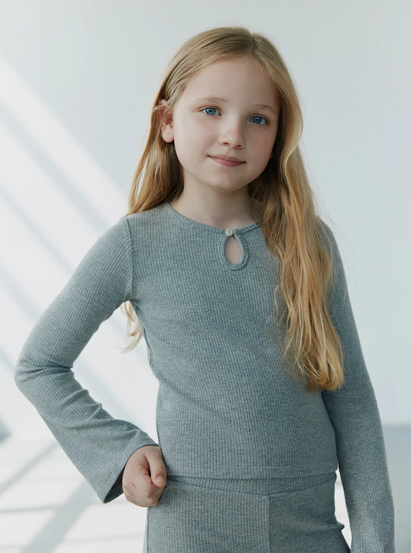 Grár bolur frá Sofie Schnoor með löngum, víðum ermum. 46% bómull, 46% viscose, 8% spandex.