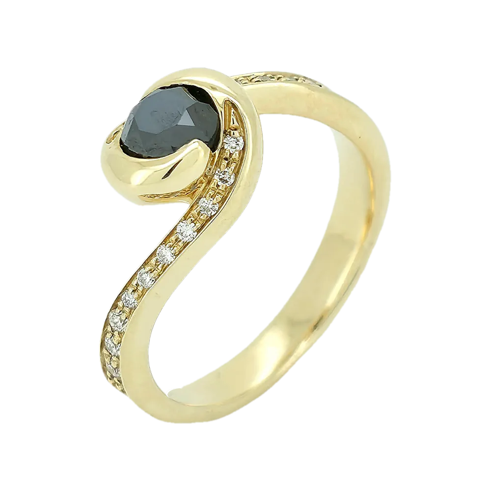 Efni hrings: 14kt gull Steinar: 21 demantur - tæru: 0,83ct - Top Wesselton VS - svarti: 0,70ct - samtals 1,53ct