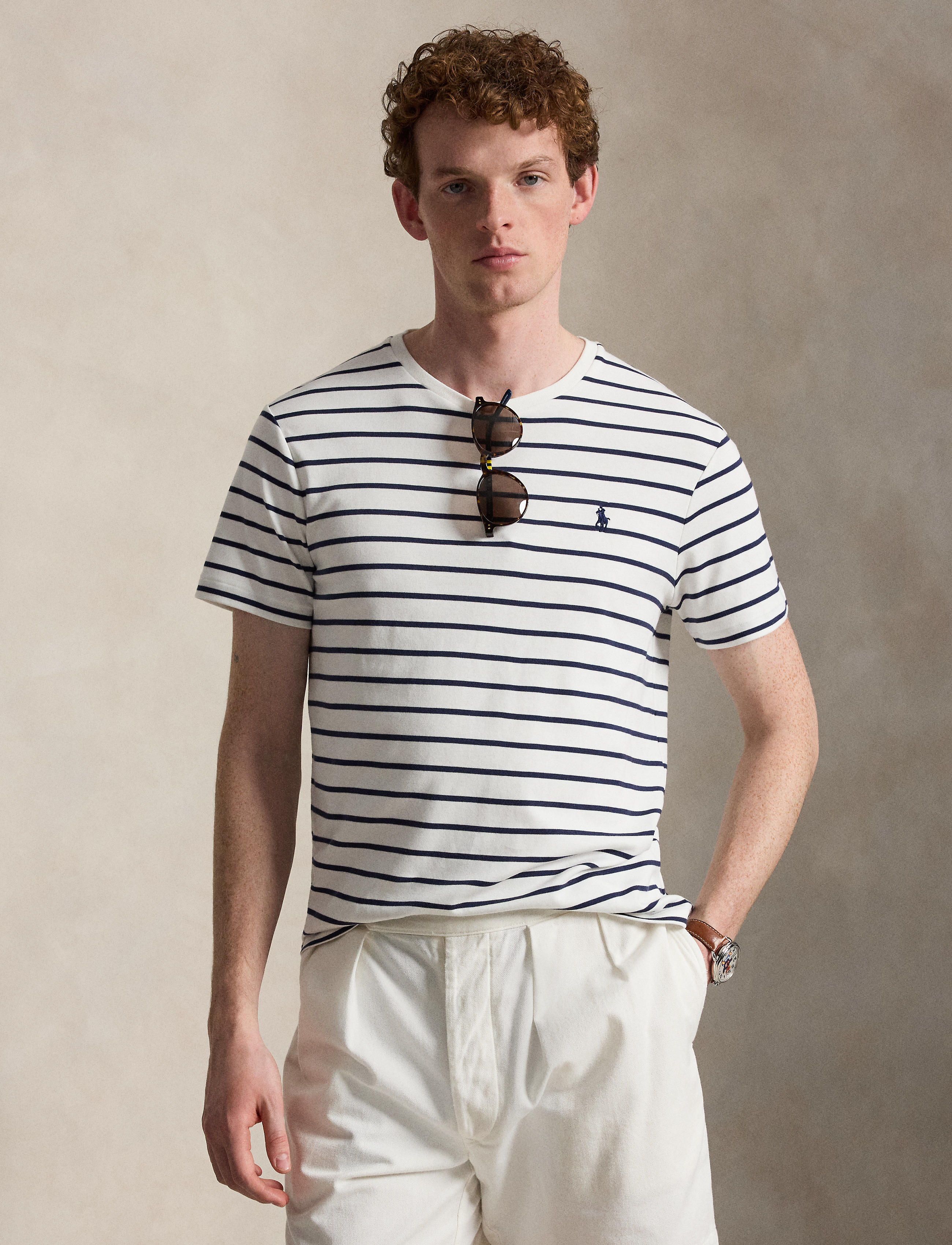 Featuring an ultrasmooth finish, this striped style is made with the same interlock fabric as our Soft Cotton Polo shirts. Custom Slim Fit: Slightly fitted through the chest and the waist. ... Sjá nánar