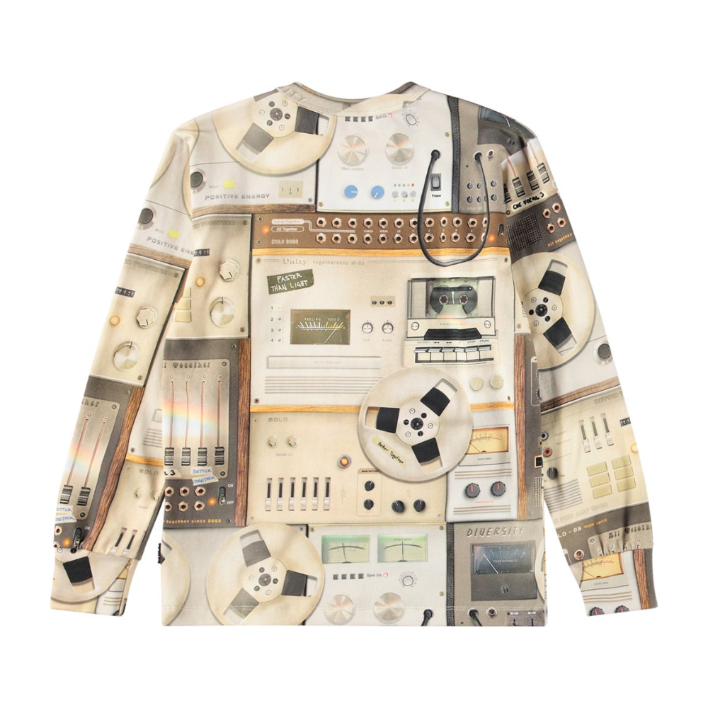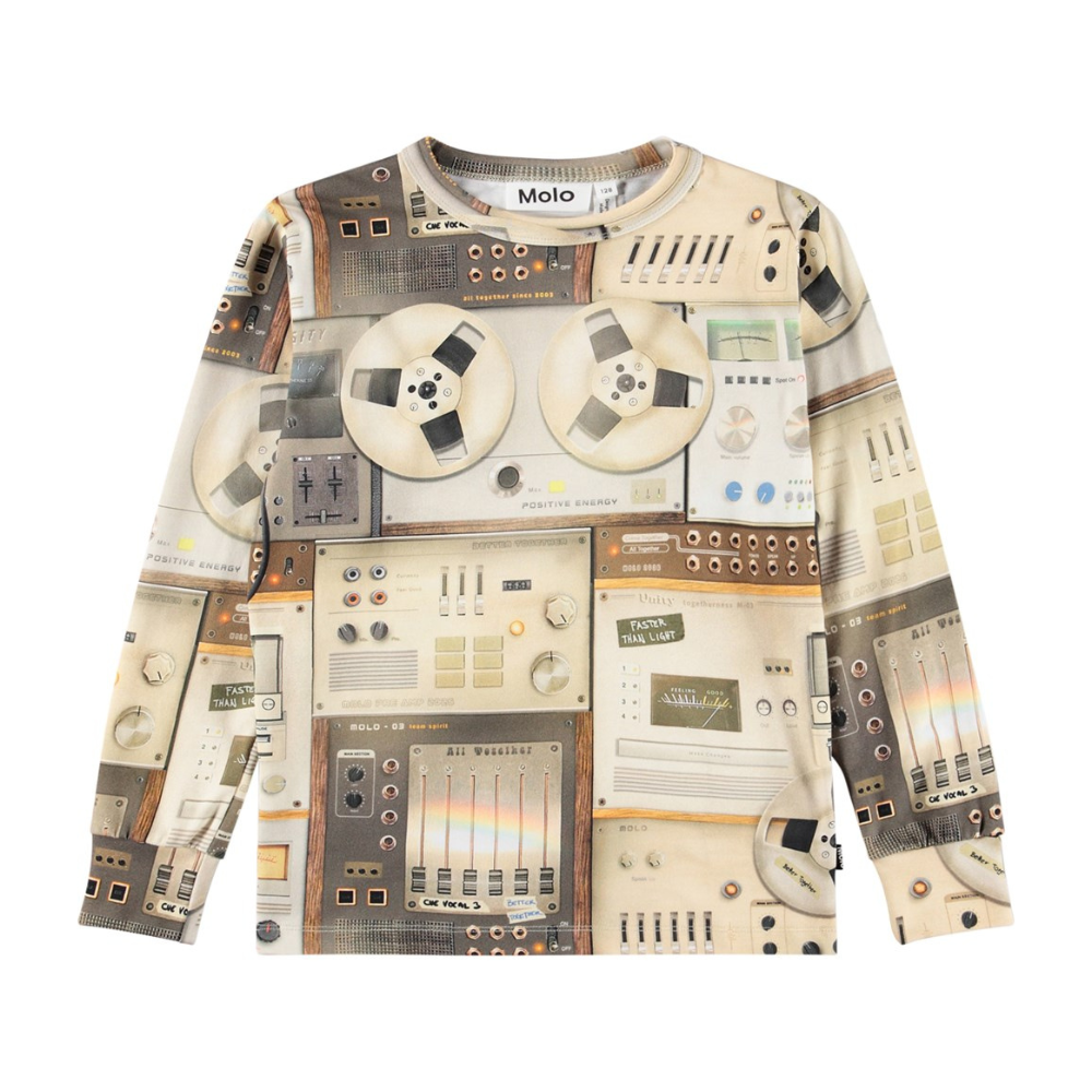 Mynstraður bómullar bolur frá Molo með stroffi á ermum. 95% bómull og 5% elastane.
