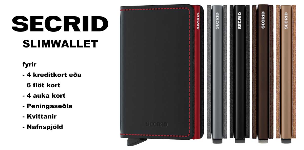 Margverðlaunuð hönnun. Secrid Slimwallet eru gerð úr gegnheilu áli og ekta leðri, allur frágangur hinn vandaðasti. Álið kemur í veg fyrir skönnun á kortunum og leðrið gefur veskinu fágað ... Sjá nánar