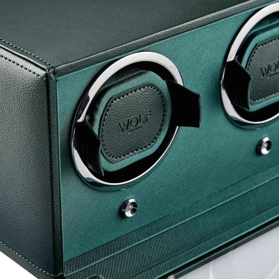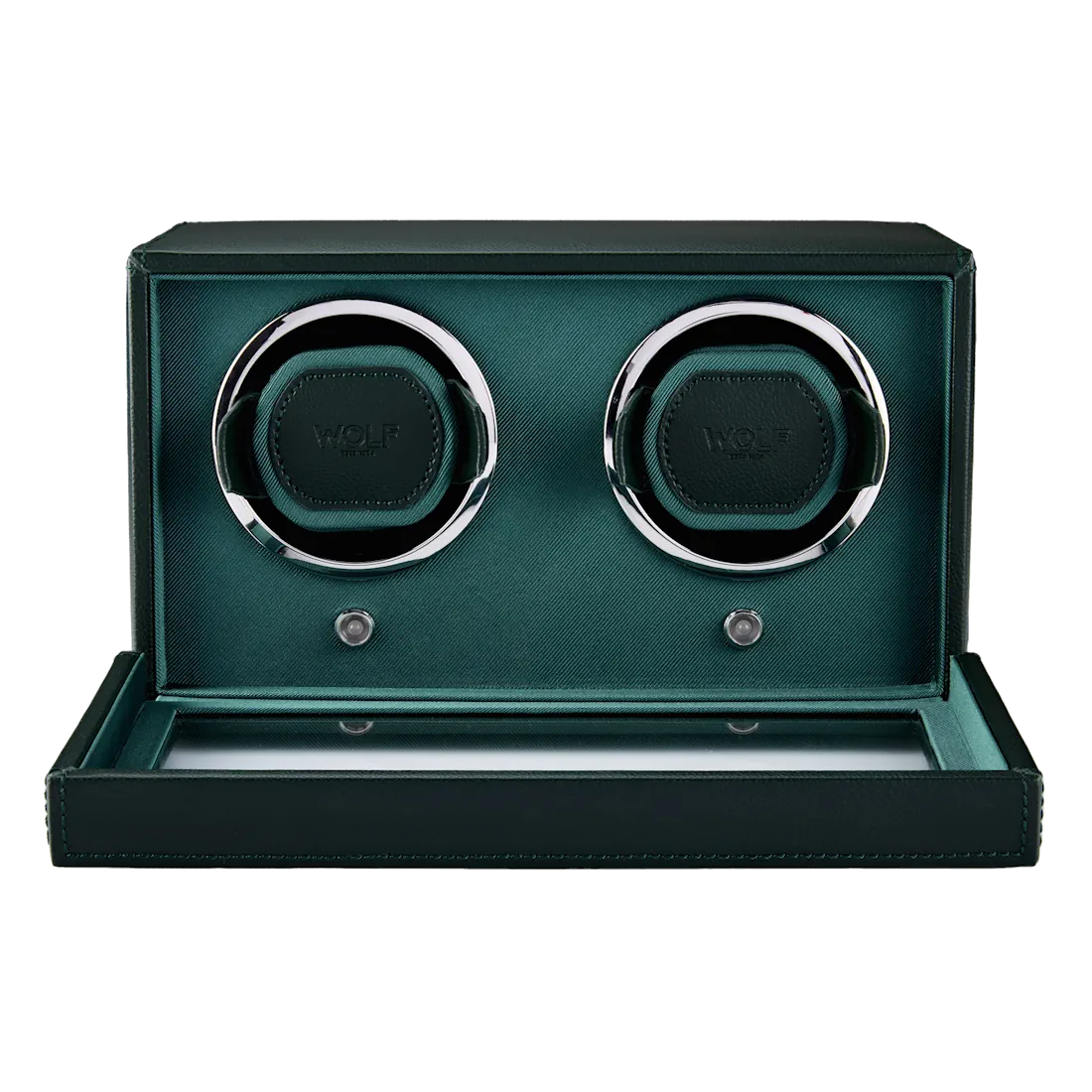 Efni: Veganleður Stærð: 26cm x 15.4cm x 14.8cm 2 vindur fyrir úr, með „lock-in“ festingu. Allar WOLF úravindur telja nákvæmlega snúninga á sólarhring. 900 snúningar á dag. Réttsælis og ... Sjá nánar