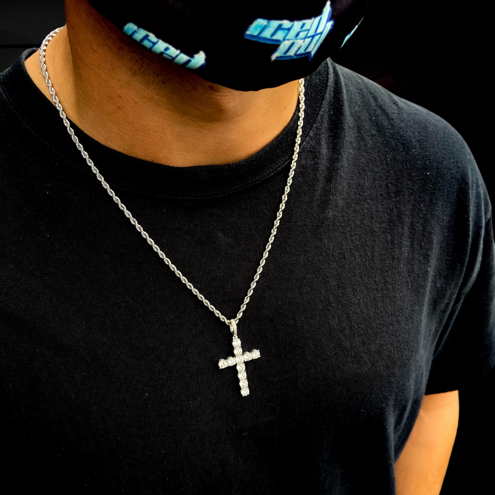 Gender : unisex Hvítagullhúðað CZ Steinar - 5A Lengd: 40mm Breidd: 20mm Kemur á cuban 3mm 20” keðju