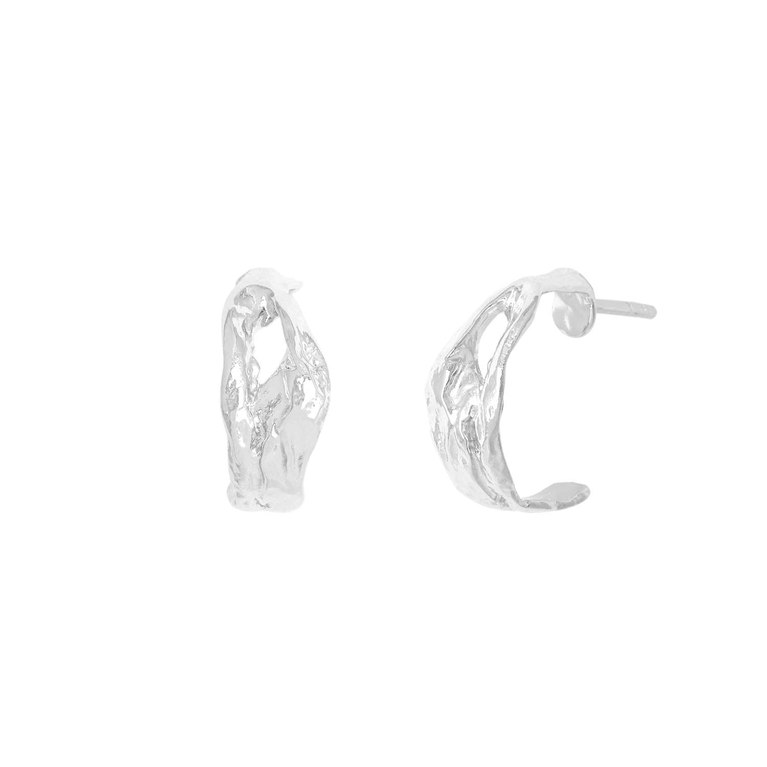Eyrnalokkarnir eru handsmíðaðir úr rhodiumhúðuðu silfri. Hæð lokkana er um 21 mm og breiddin um 10 mm. Hönnuður og smiður er Berglind Snorra.