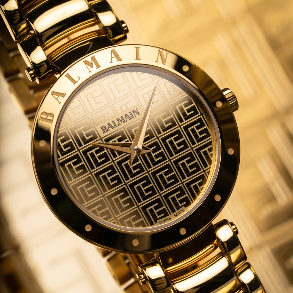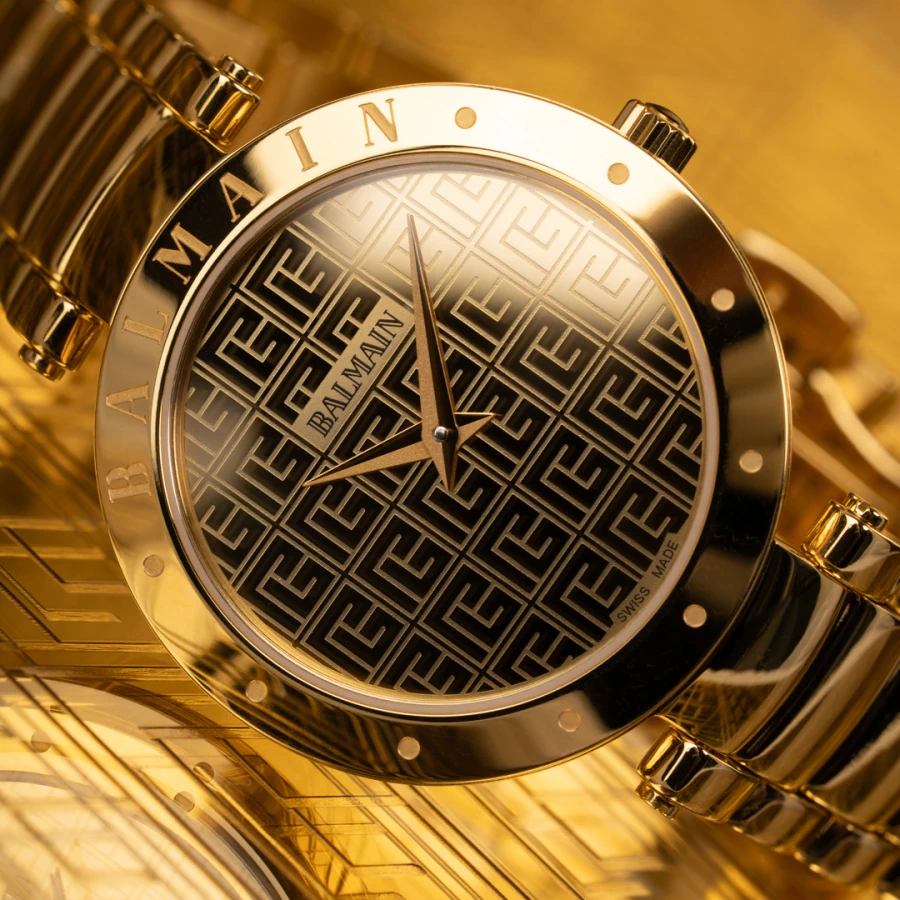 Úrkassi: 33mm – gyllt stál Úrverk: Rafhlaða – svissneskt Vatnsvörn: 30M Skífa: Gyllt með PB Balmain monogram – vísar Gler: Safírgler – speglunarvörn Keðja: Gyllt stál Ábyrgð: Tveggja ára