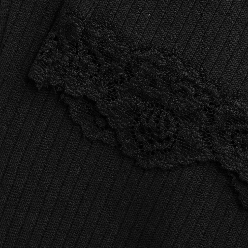 Svartar, rifflaðar leggingsbuxur með pífu við skálmar. 50% modal, 46% bómull og 4% Elastane.