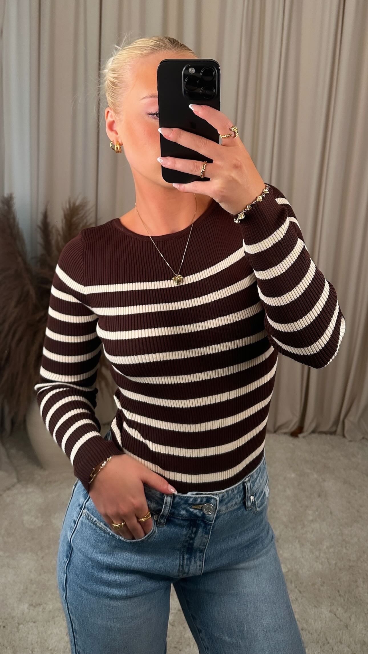 Æðislega flott stripped samfella úr mjög þæginlegu efni, það er góð teygja í efninu  modelið er 160cm og er í stærð S/M