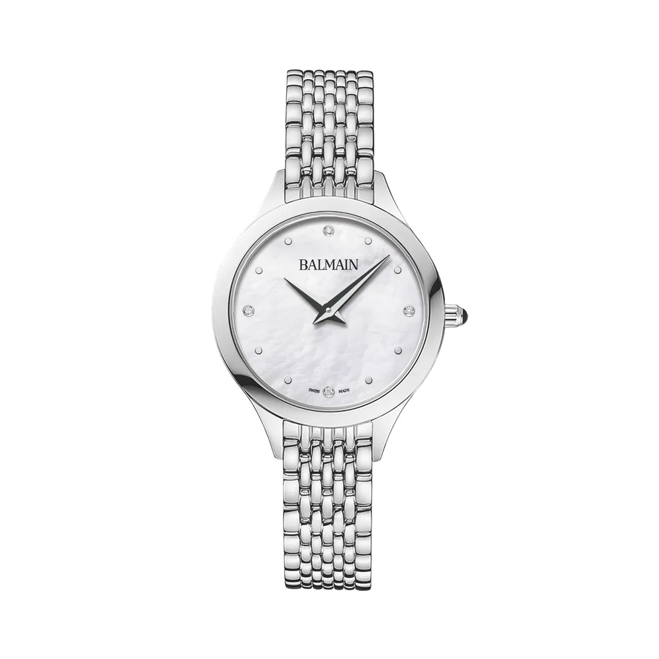 Úrkassi: 29mm – stál Úrverk: Rafhlaða – svissneskt Vatnsvörn: 50M Skífa: Hvít perlumóðir – 4 demantar (Top Wesselton VS-SI – 0,015ct) – vísar Gler: Safírgler – speglunarvörn Keðja: Stál – ... Sjá nánar