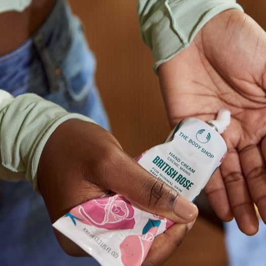 Léttur handáburður sem nærir og mýkir. Dásamlegur rósailmur. Hentug stærð sem passar vel í veskið. Handáburður Mýkir húðina Rósailmur Community Trade shea frá Ghana Vegan