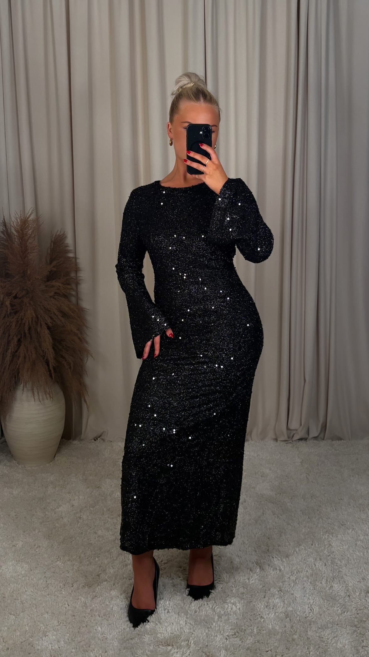 Æðislega fallegur pallíettu kjóll úr mjög þæginlegu efni, það er smá teygja í efninu  modelið er 168cm og er í stærð S