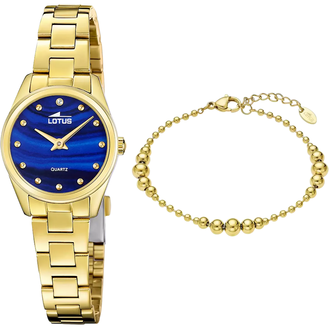 Úr: Úrkassi: 26mm – gyllt stál Úrverk: Rafhlaða Vatnsvörn: 50M Skífa: Blá – vísar Gler: Hert gler Keðja: Gyllt stál Ábyrgð: Tveggja ára Armband: Efni armbands: Gyllt stál