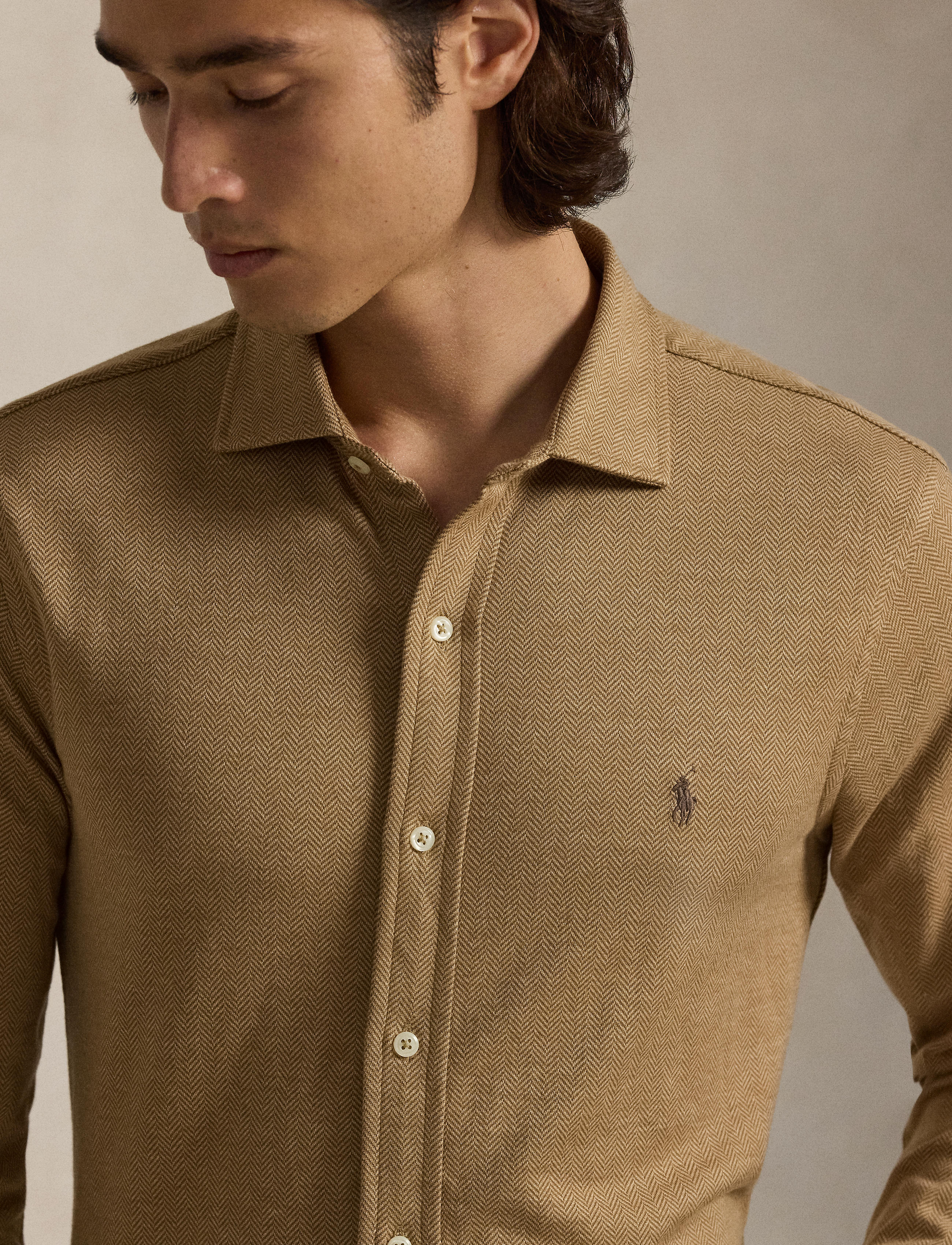 This herringbone-patterned layer combines the polished look of our signature spread-collar shirt with soft cotton jersey. Size medium has a 30" front body length, a 30.5" back body length, an ... Sjá nánar