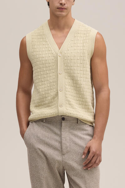 Létt hneppt vesti frá NN07 með mjúkri prjónaáferð, fullkomið yfirlag yfir sumarfatnað.