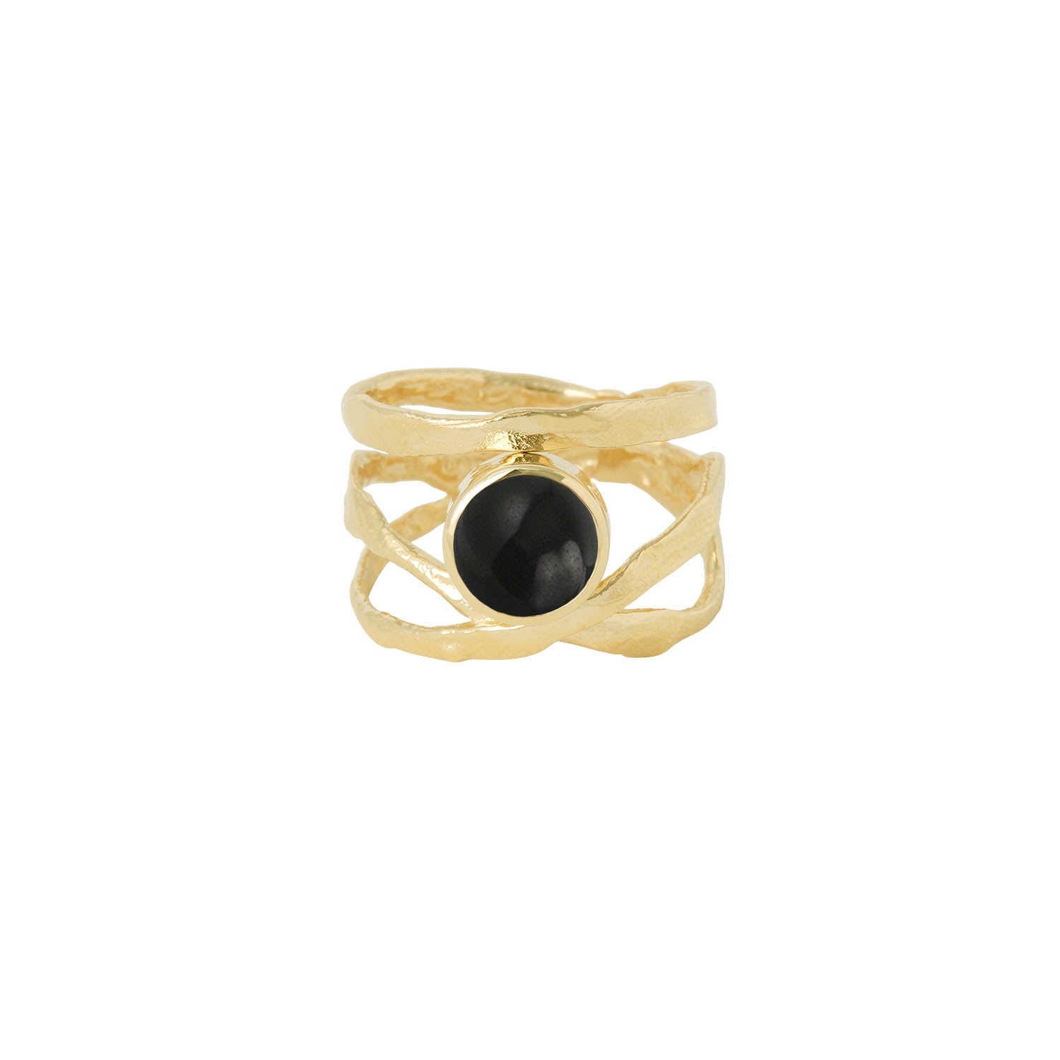Hringurinn er handsmíðaður úr 14 karata gulli með íslenskum mugerit steini. Breidd hringsins er um 15 mm. Hönnuður og smiður er Berglind Snorra.