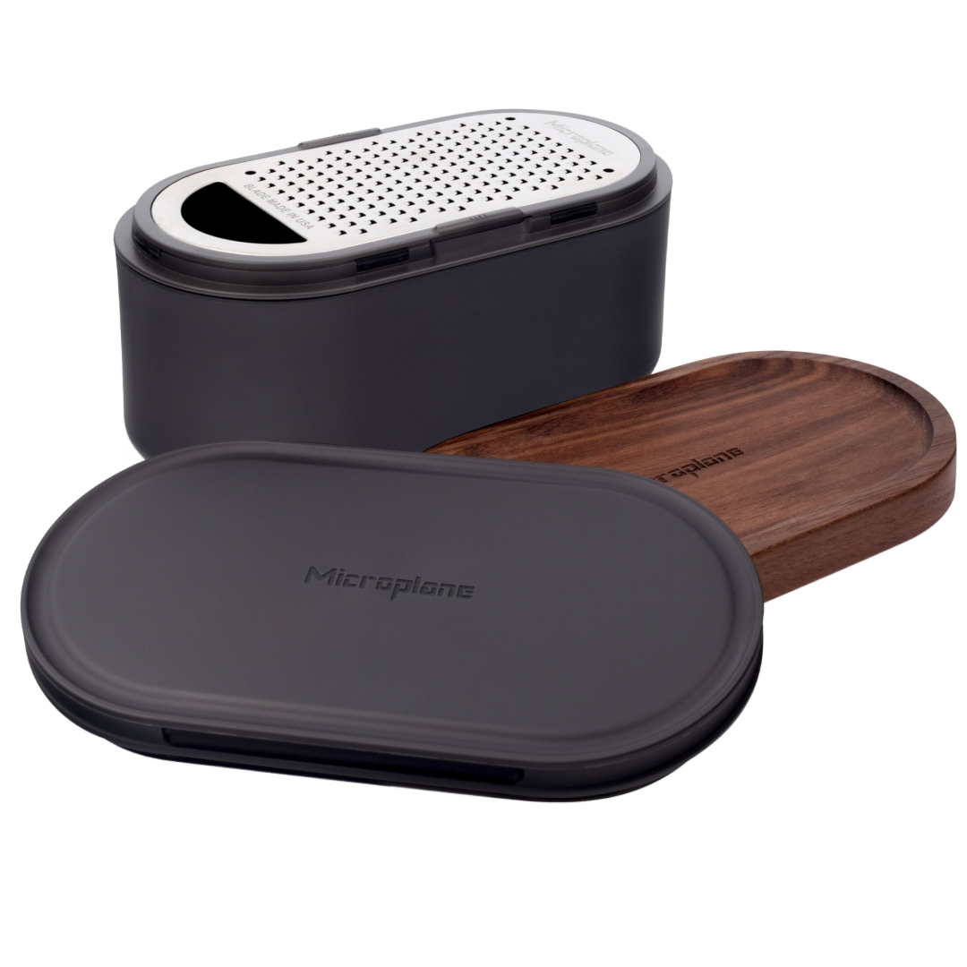 Rifjárn með boxi. Boxið með kemur meö rifjárni sem er fullkomið fyrir parmesan og aðra harða osta og tveimur mismunandi lokum, öðru úr við til að nota þegar boxið er notað á matarborðinu og ... Sjá nánar