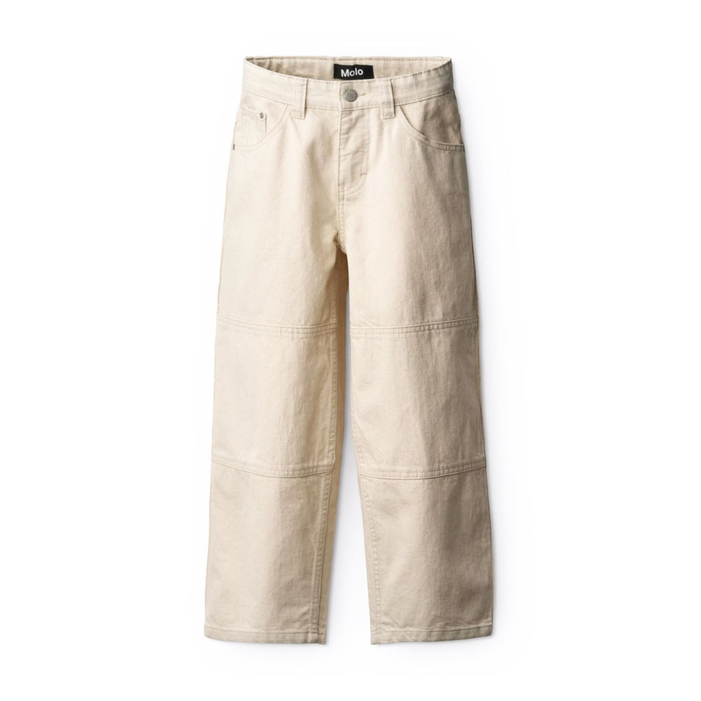 Ljósar, víðar gallabuxur frá Molo. Buxurnar er hægt að þrengja í mittið. 100% bómull.