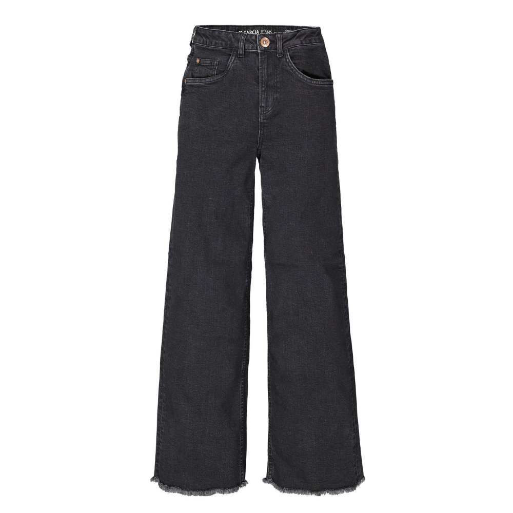 Svartar, útvíðar gallabuxur frá Garcia. 99% bómull og 1% elastane.