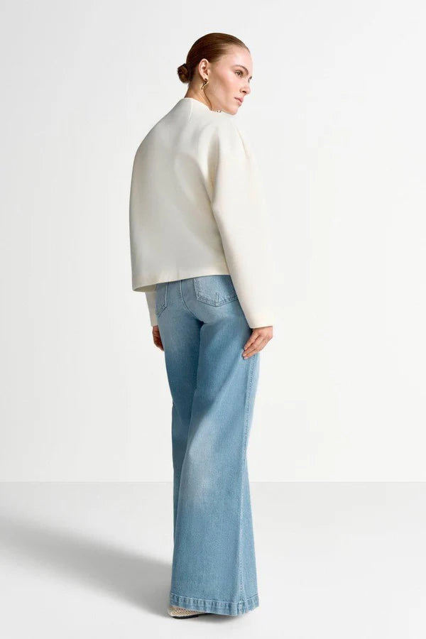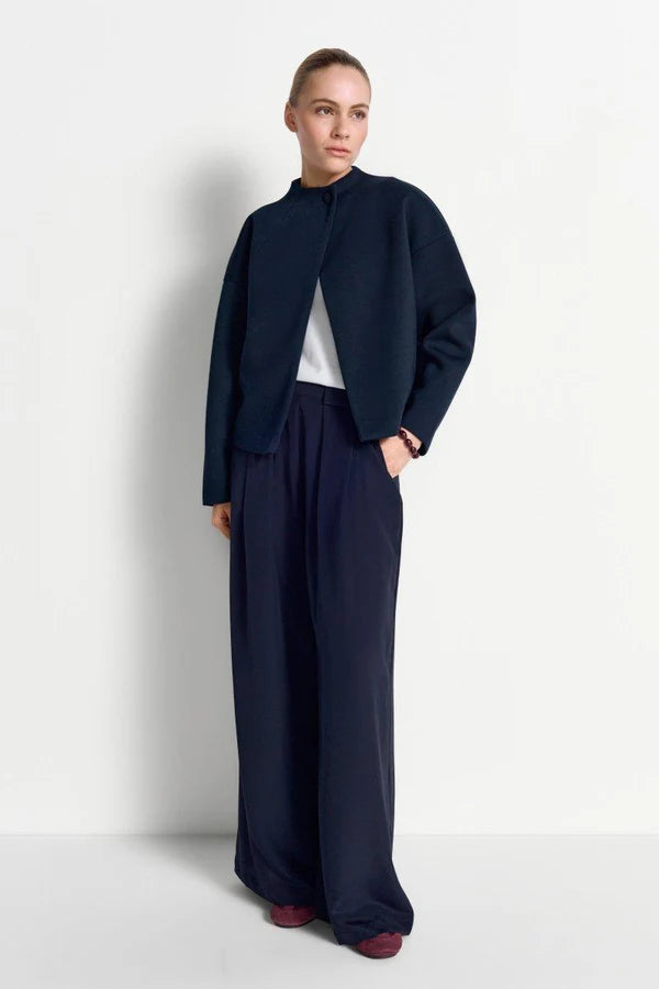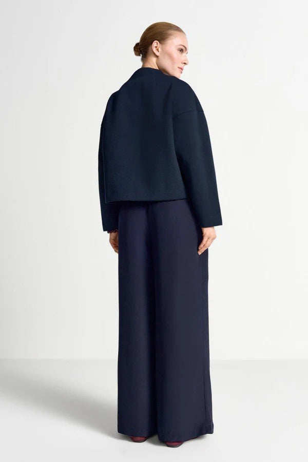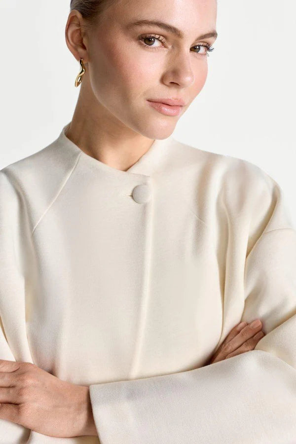 Stuttur jakki úr mjúka scuba efninu. Hnepptur við hálsmál.  50% Viscose 50% Polyester