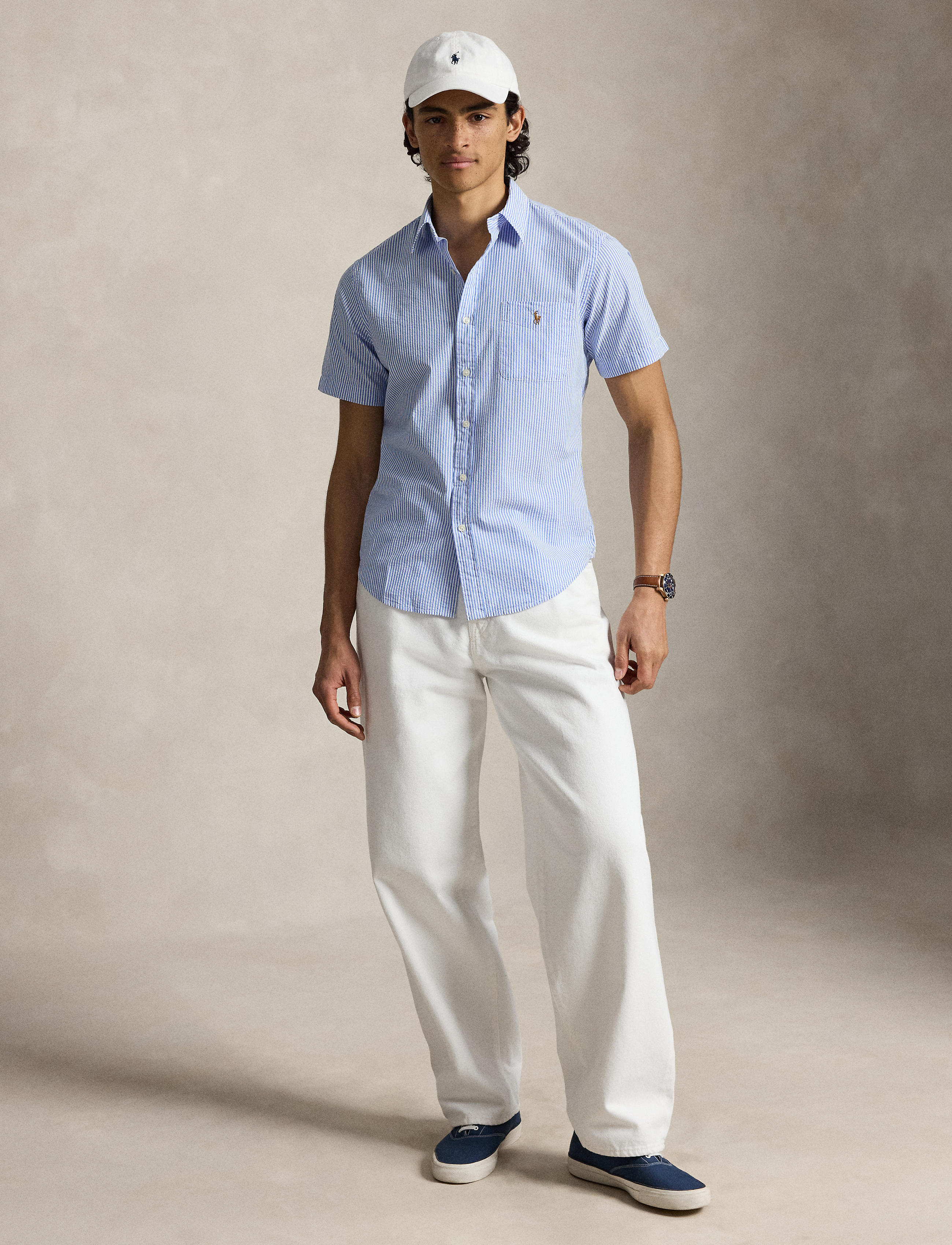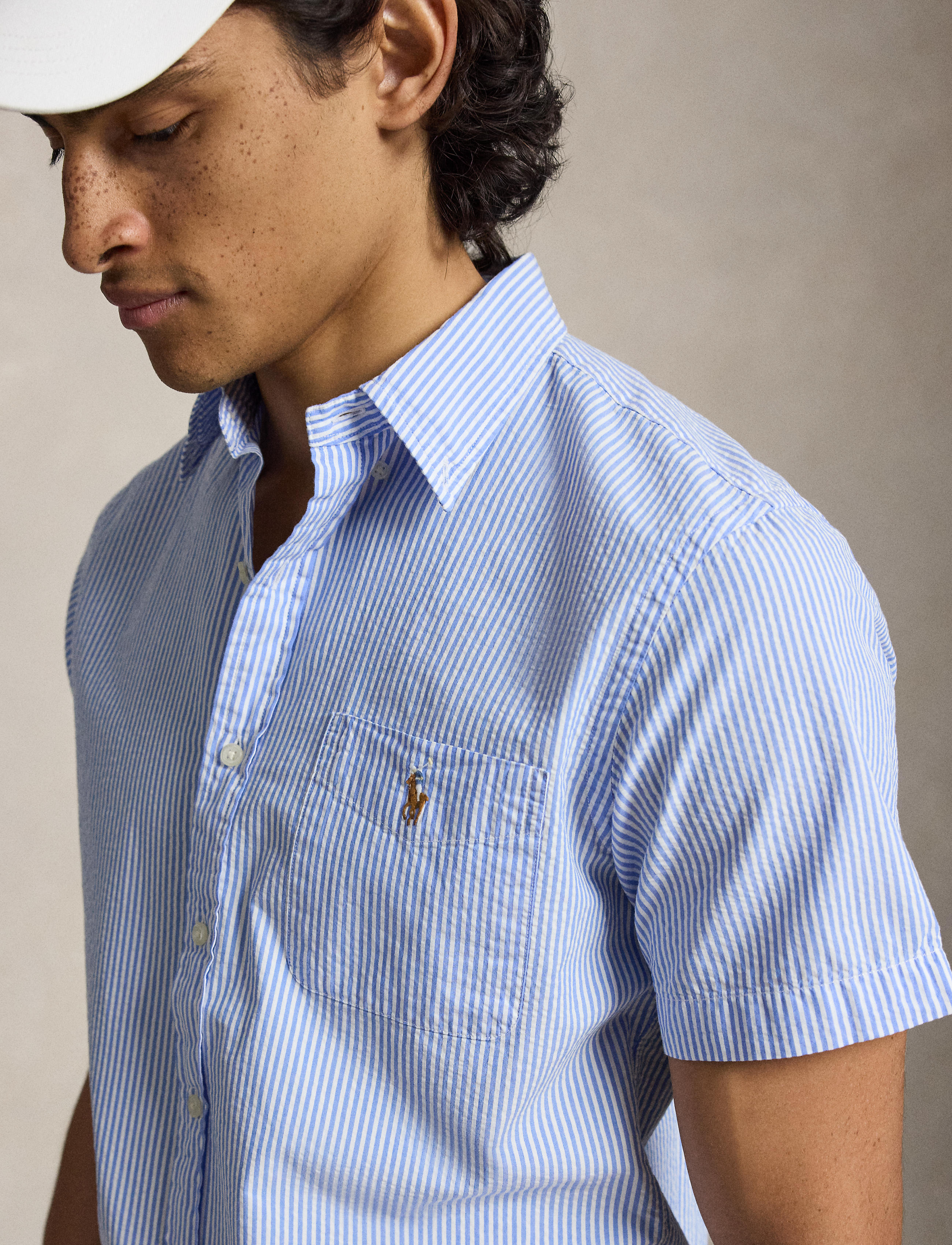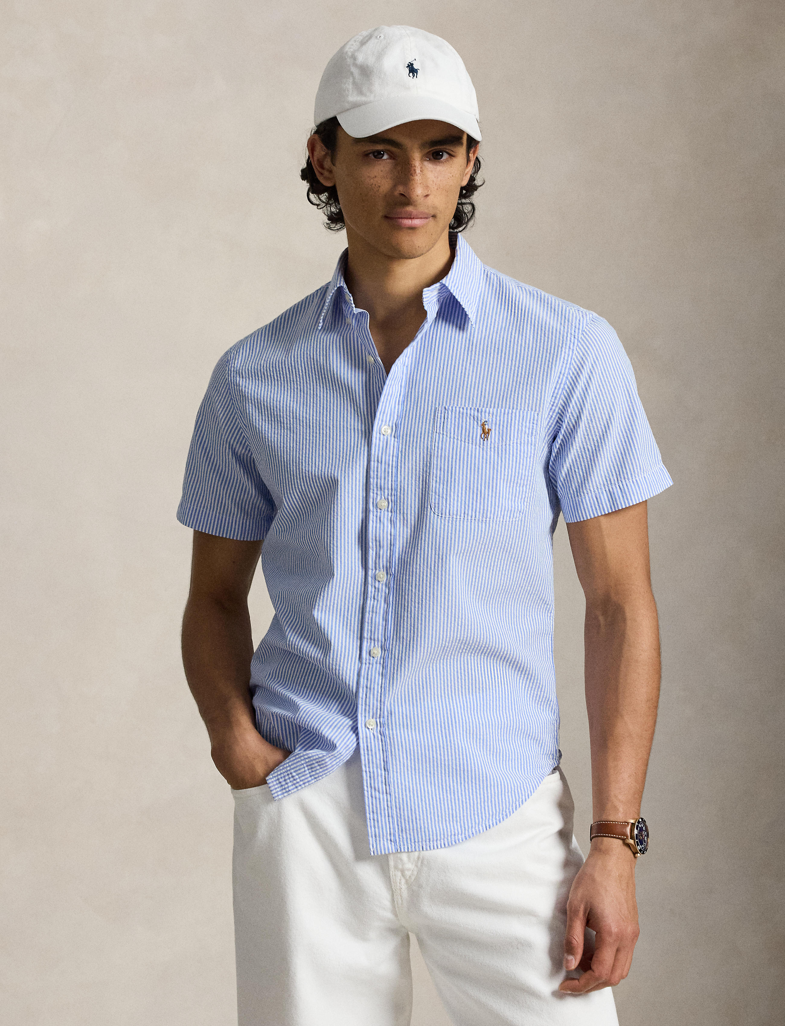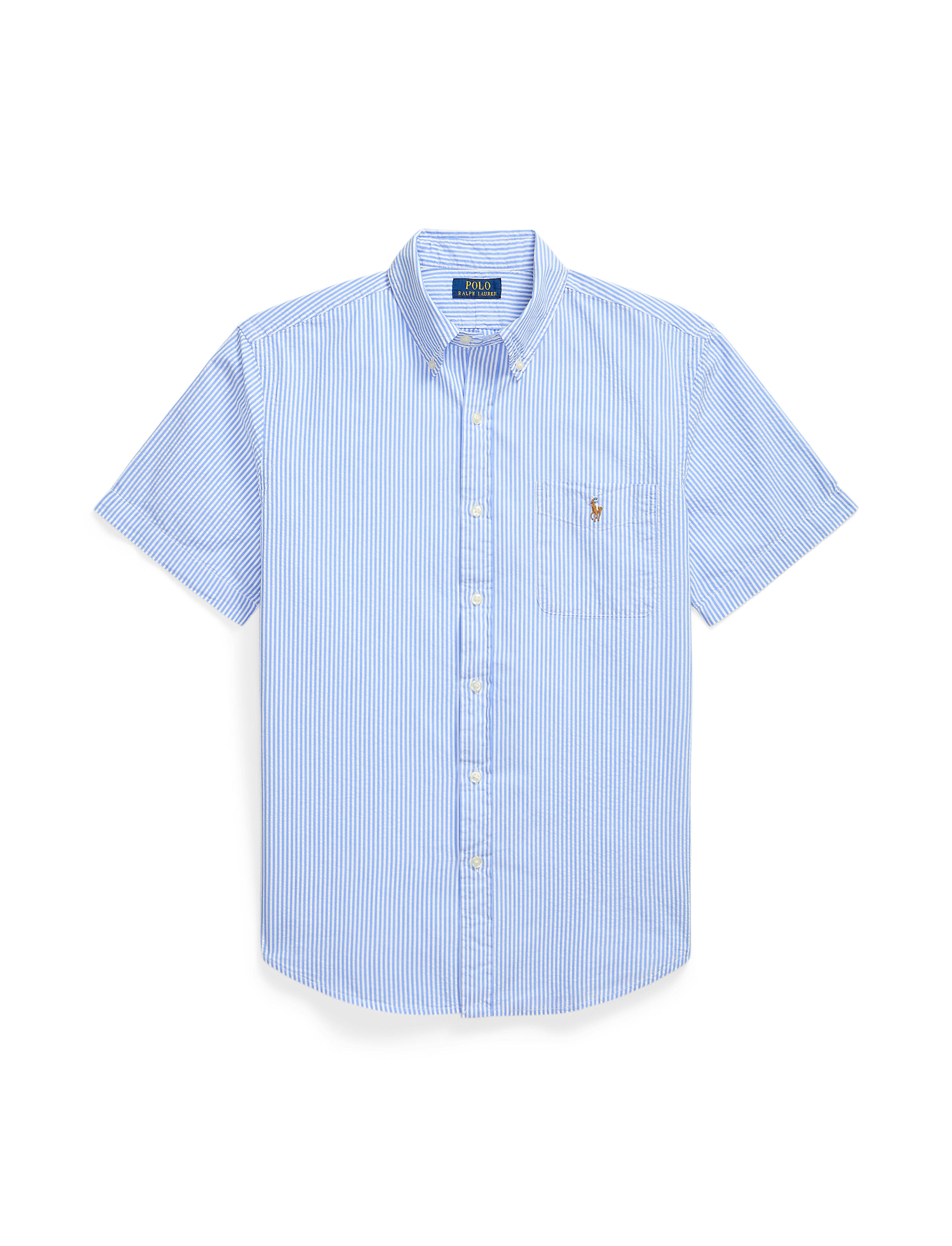 Designed with a shorter length, the RL Prepster is perfect for wearing untucked. This striped version is made with lightweight cotton seersucker and washed for extra softness. Features a ... Sjá nánar