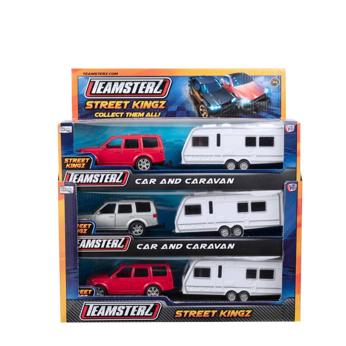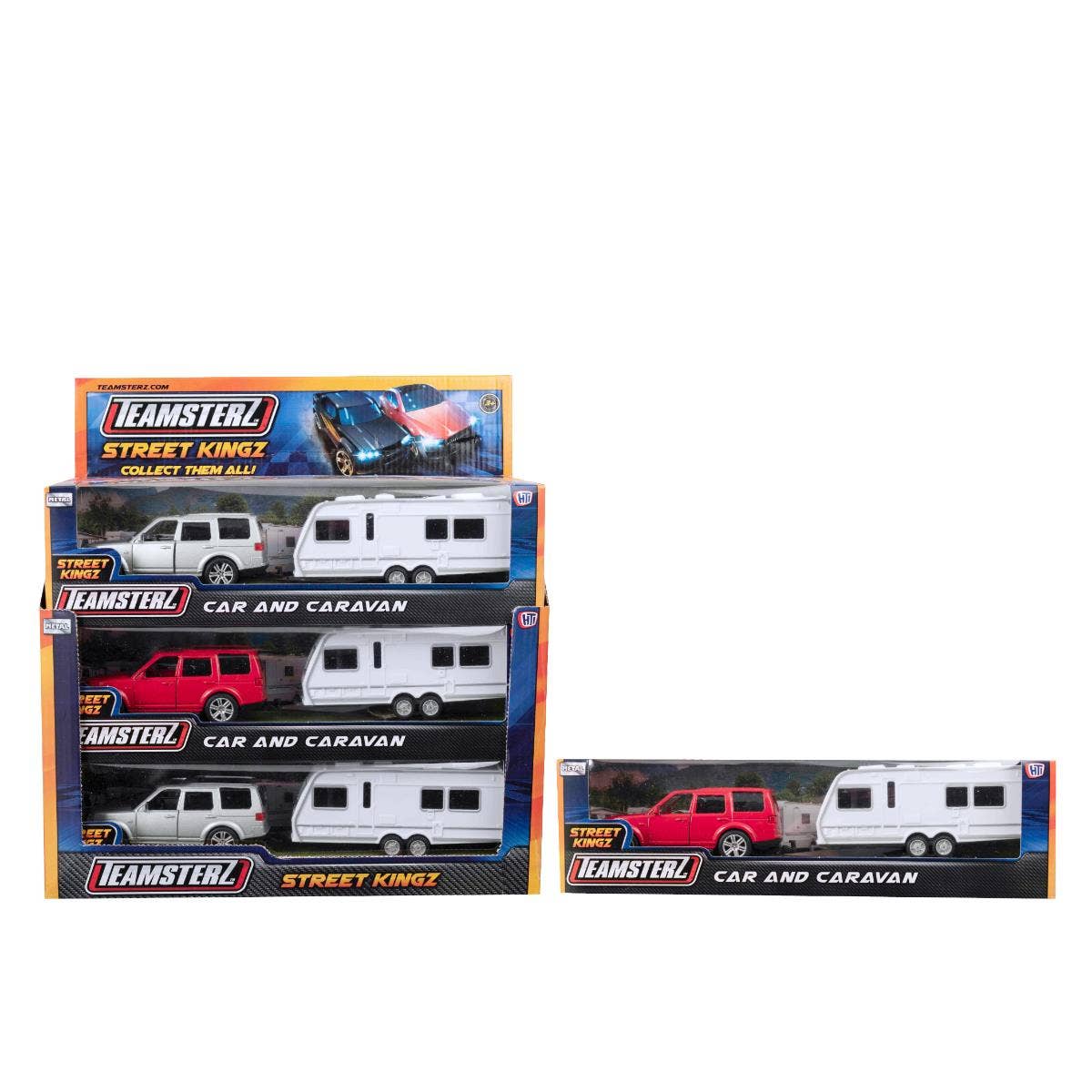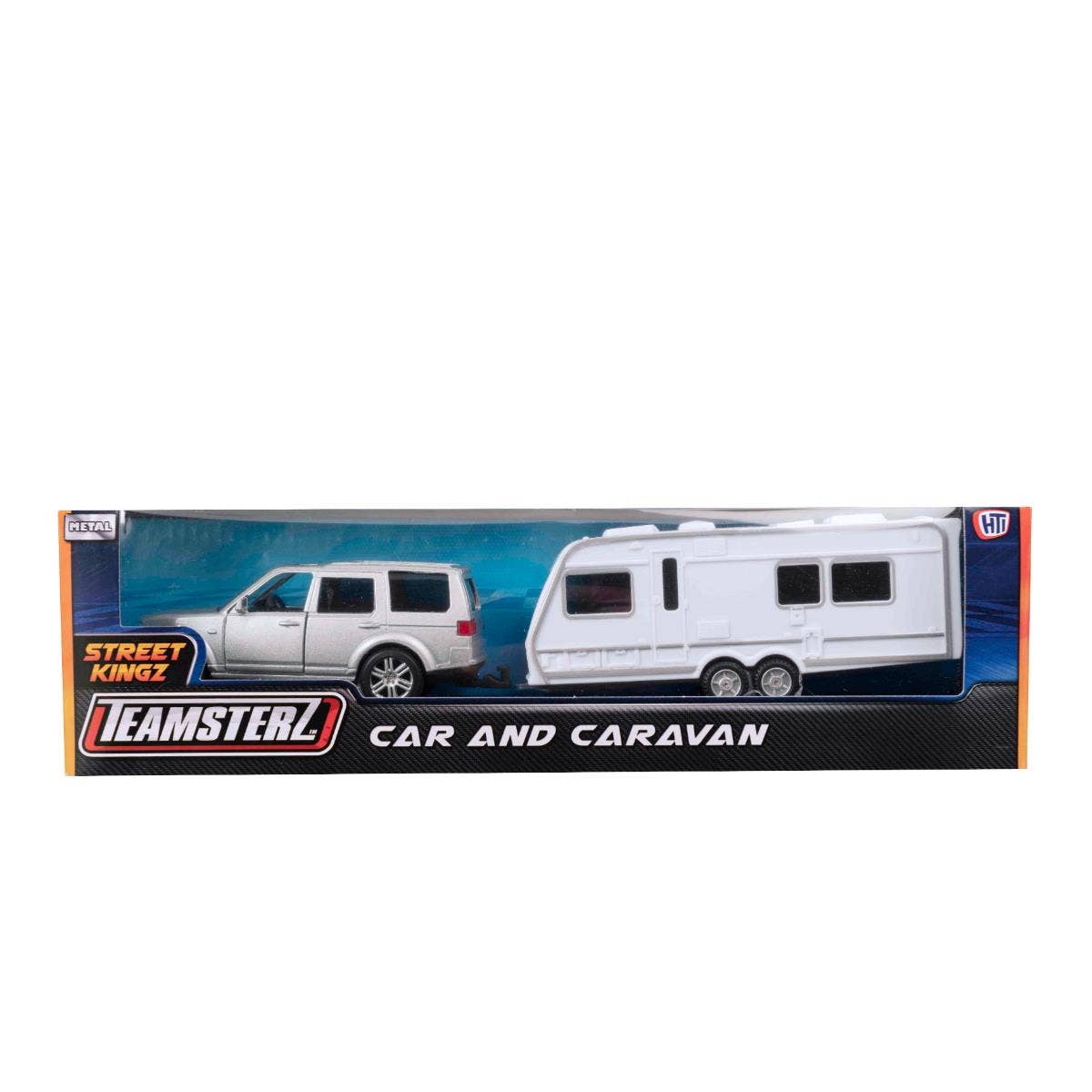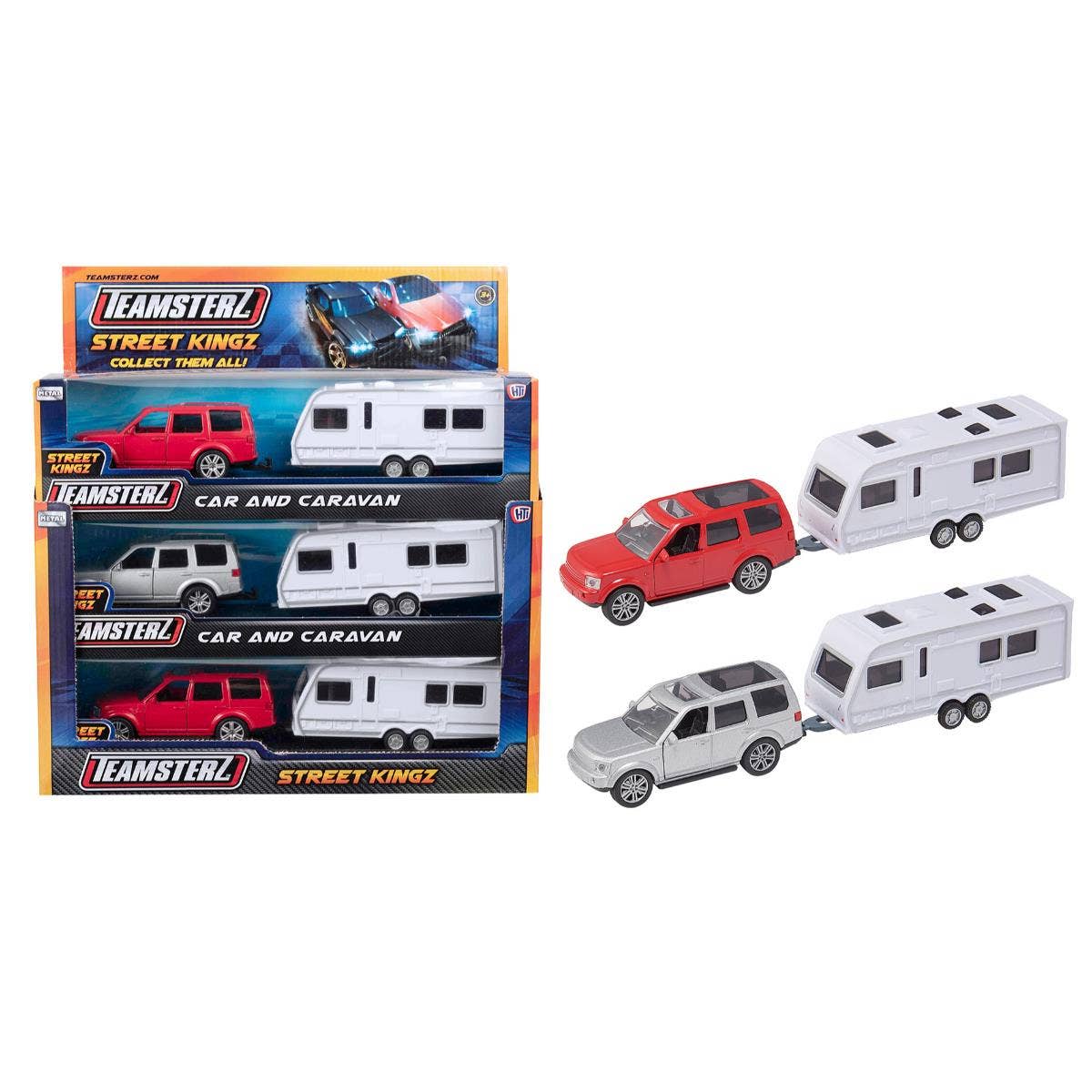 Jeppi og hjólhýsi tilbúin í ferðalagið.