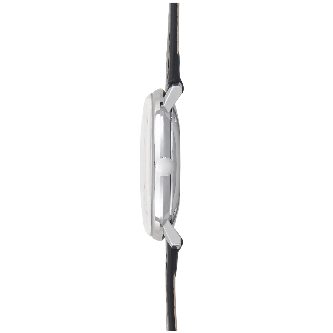 Úrkassi: 38mm – stál Úrverk: Sjálftrekkt – svissneskt Vatnsvörn: 50M Skífa: Silfurlituð - dagsetning hjá kl 3 – vísar Gler: Safírgler – speglunarvörn Ól: Leður Ábyrgð: Tveggja ára
