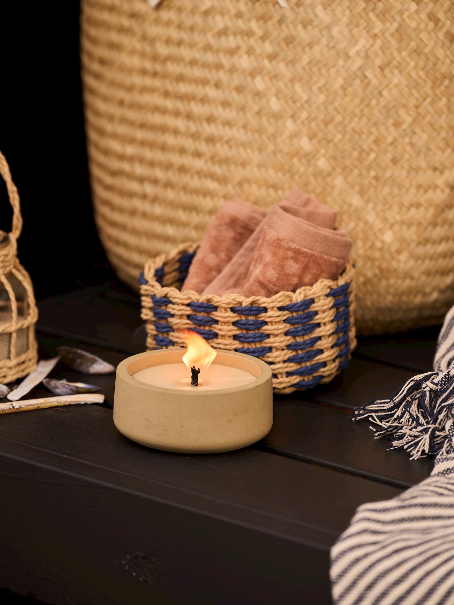 Spring feelings Anna sets the candle in its holder on the patio table and strikes a match. Clara checks it is steady, and reflects, 'Now we can actually see the snacks.'