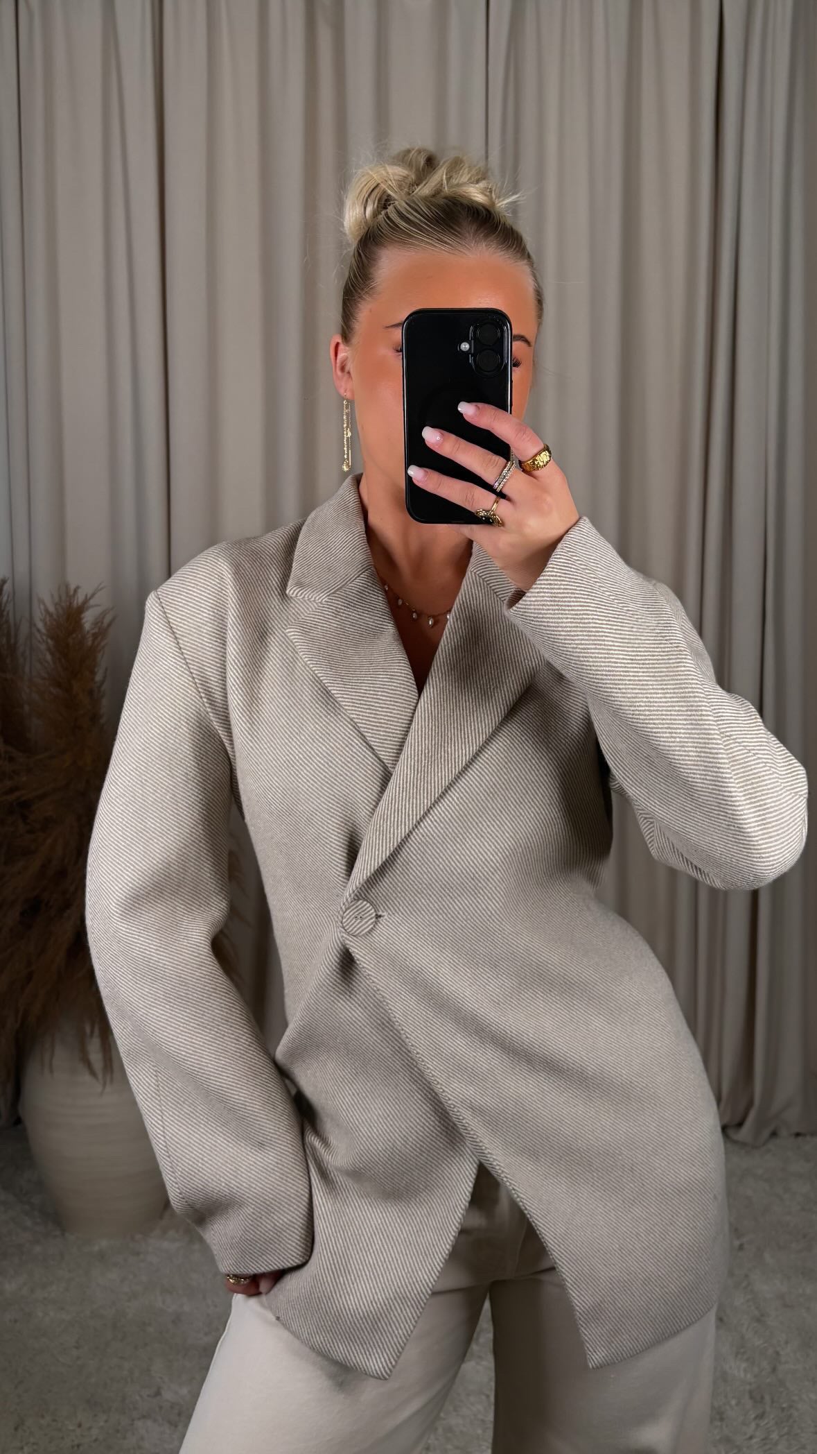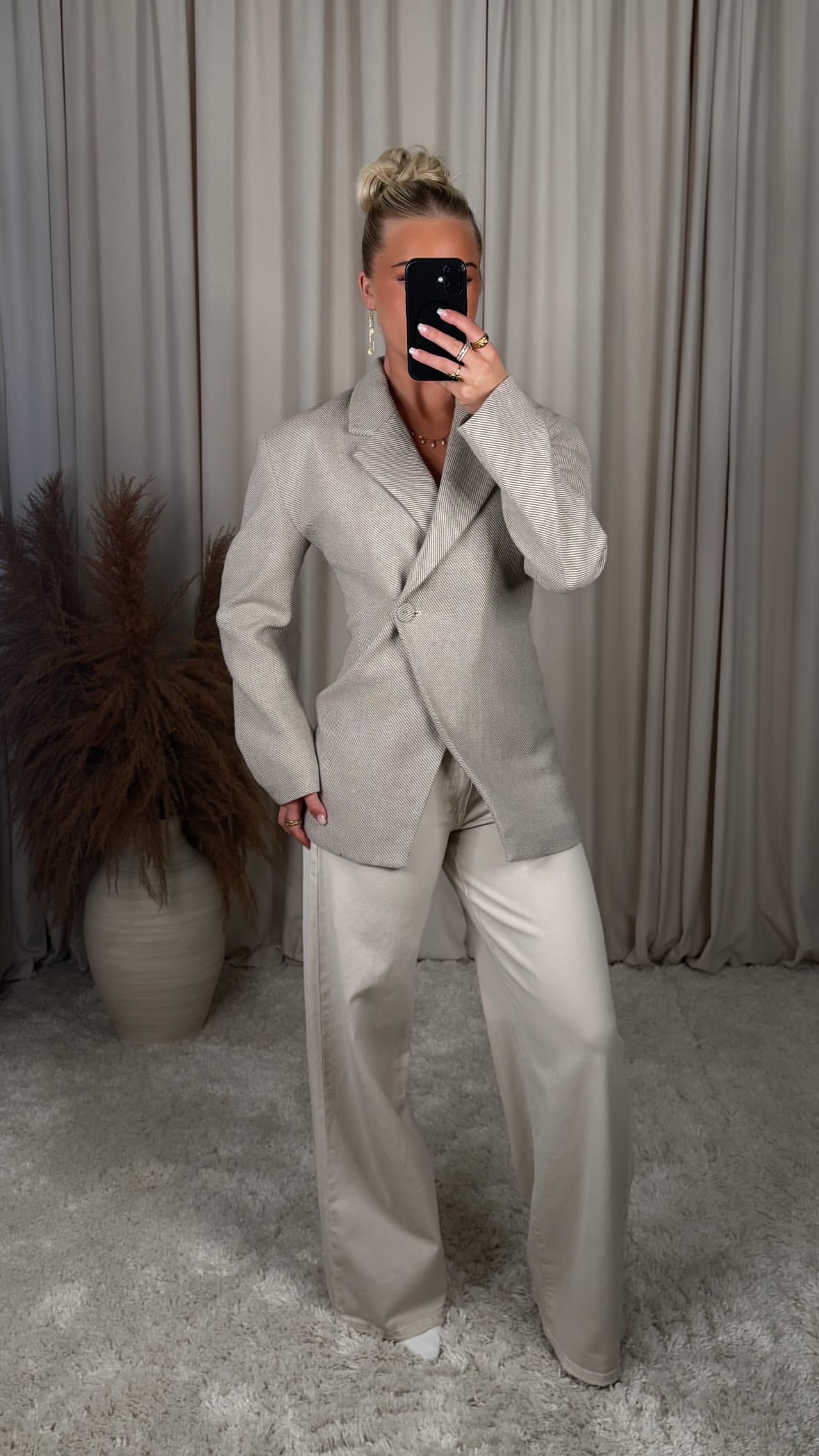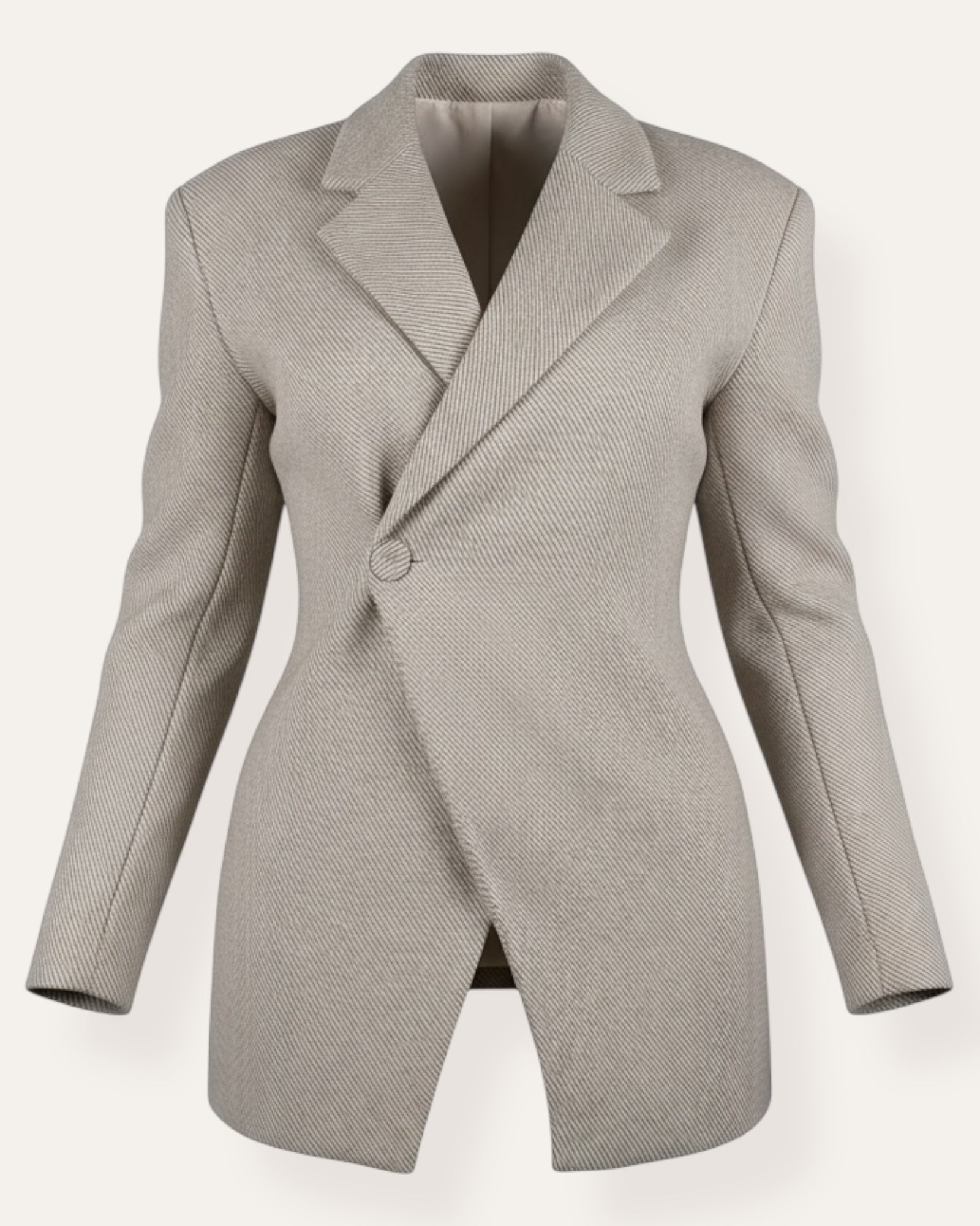 Tailored blazer – minimal og chic   Elegant og mótaður blazer í fallegu ullarblönduðu efni sem gefur lúxuslega áferð án þess að vera þungur. Efnið er mjúkt og með létta ullar-áferð sem ... Sjá nánar